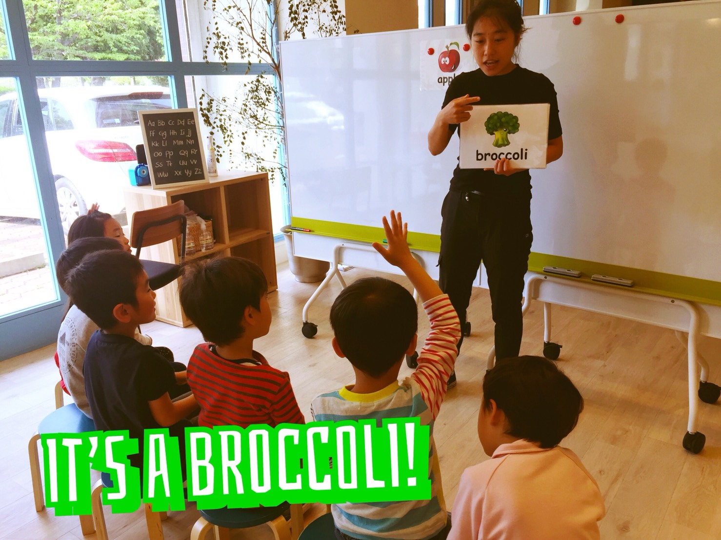 “It’s broccoli/carrot/onion/banana/apple.”(それはブロッコリー・にんじん・たまねぎ・バナナ・りんご)