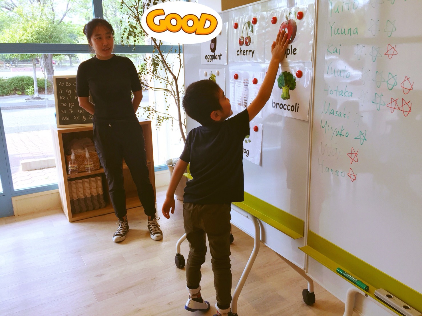シンプルなアルファベットやあいさつ、食べ物の単語ゲームなどをしました。