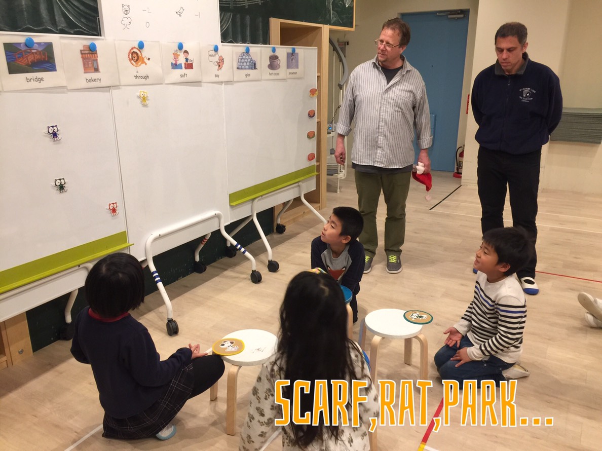 Scarf(マフラー)、Rat(ねずみ)、Park(公園)、Bakery(パン屋)、Hen(めんどり)、Bridge(橋)