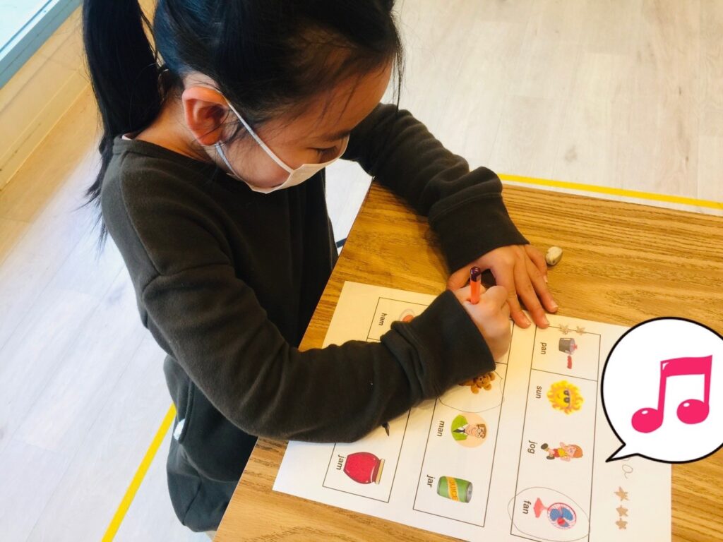 語尾や音が同じ単語を繰り返し言って、楽しく発音(音)やリスニングの練習をしています