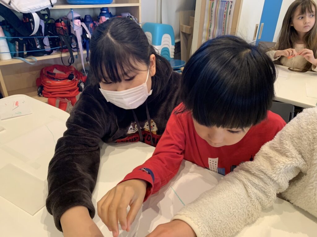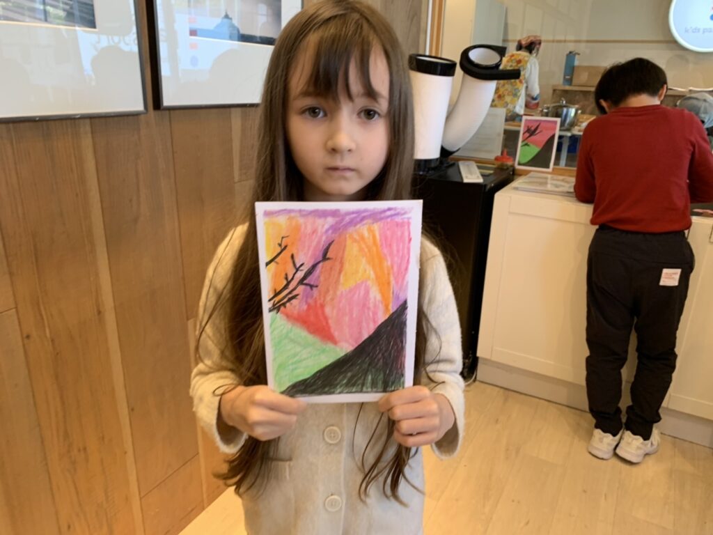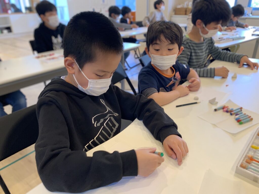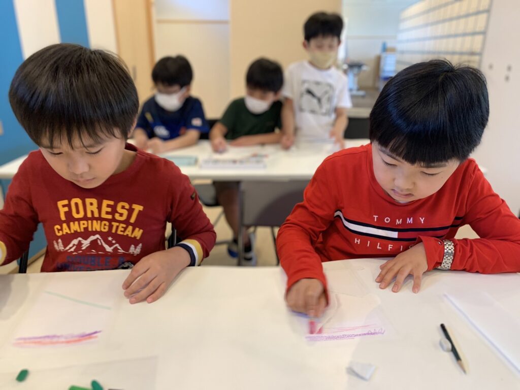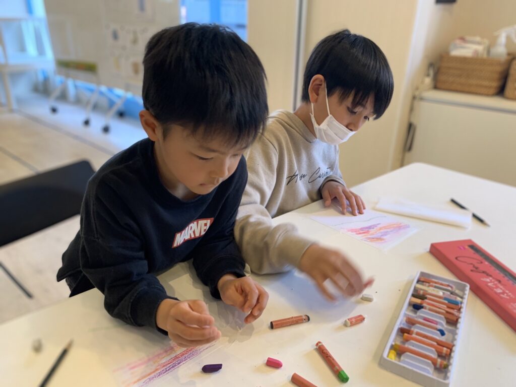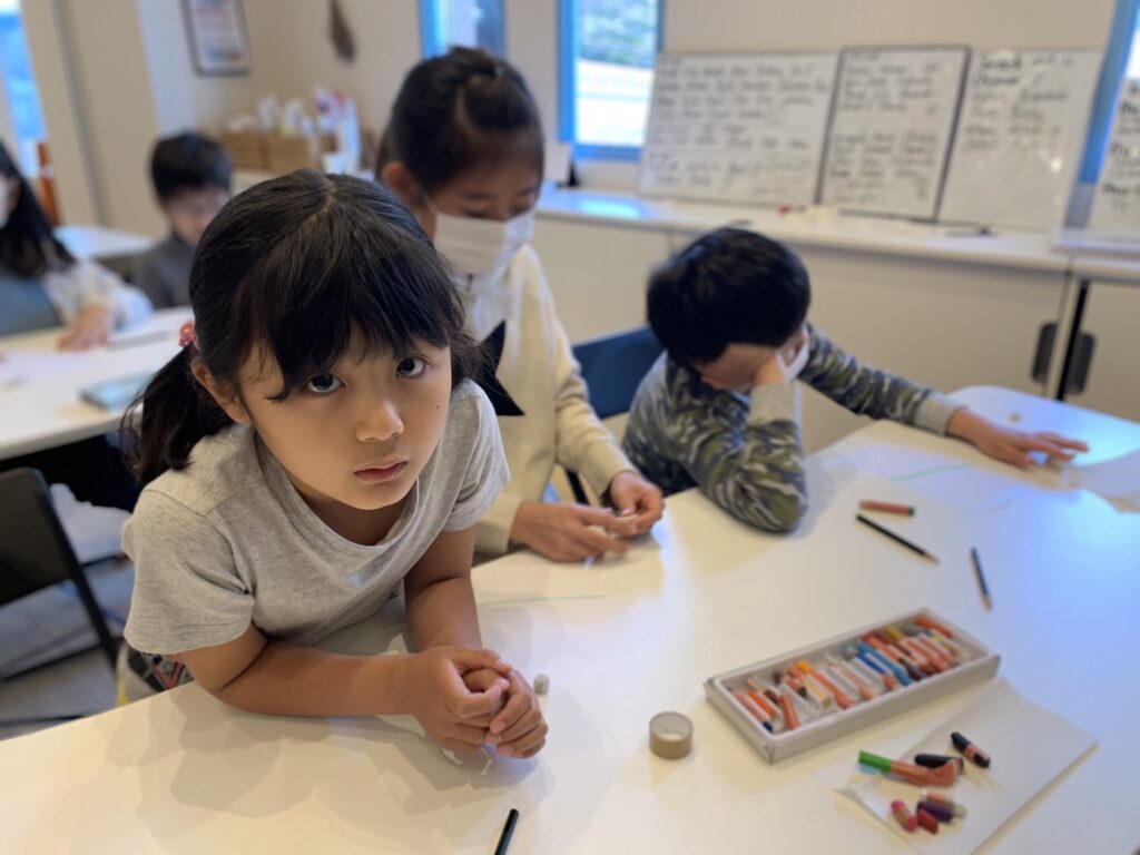 一緒にトライ!オイルクレヨンを使ったアートの授業でした