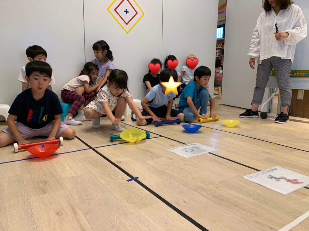 上手にできた人は一番遠くまで押せていて