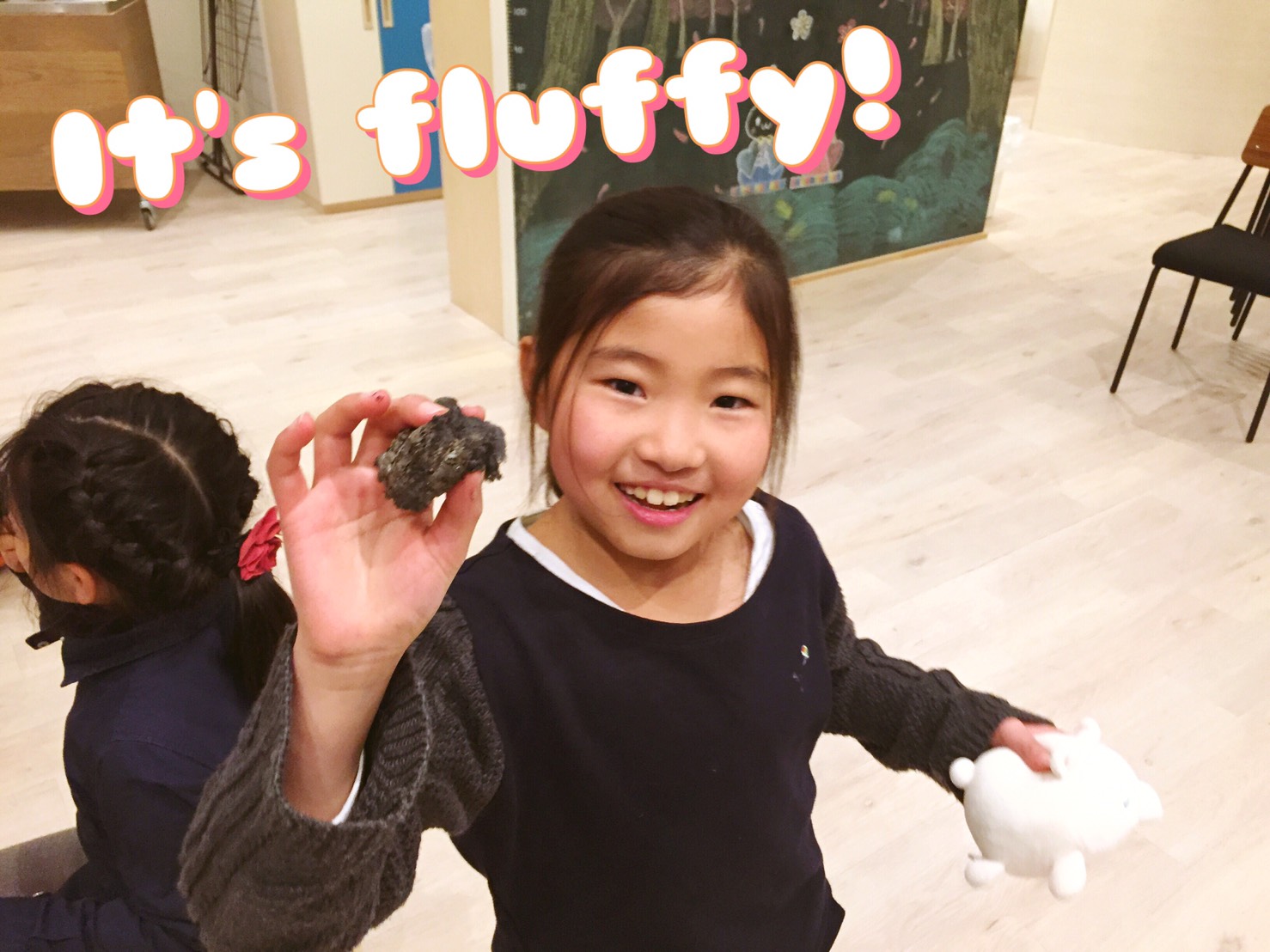 できあがった不思議な物体を触ると変な感触に興味津々!