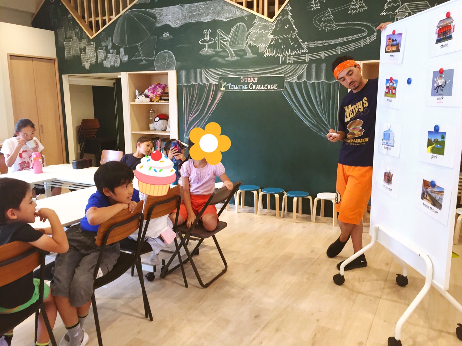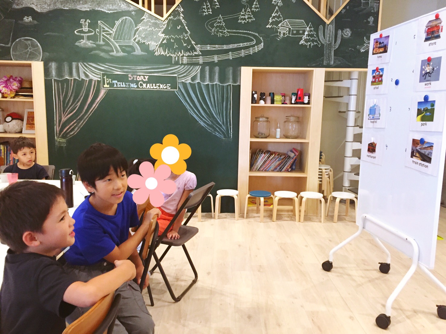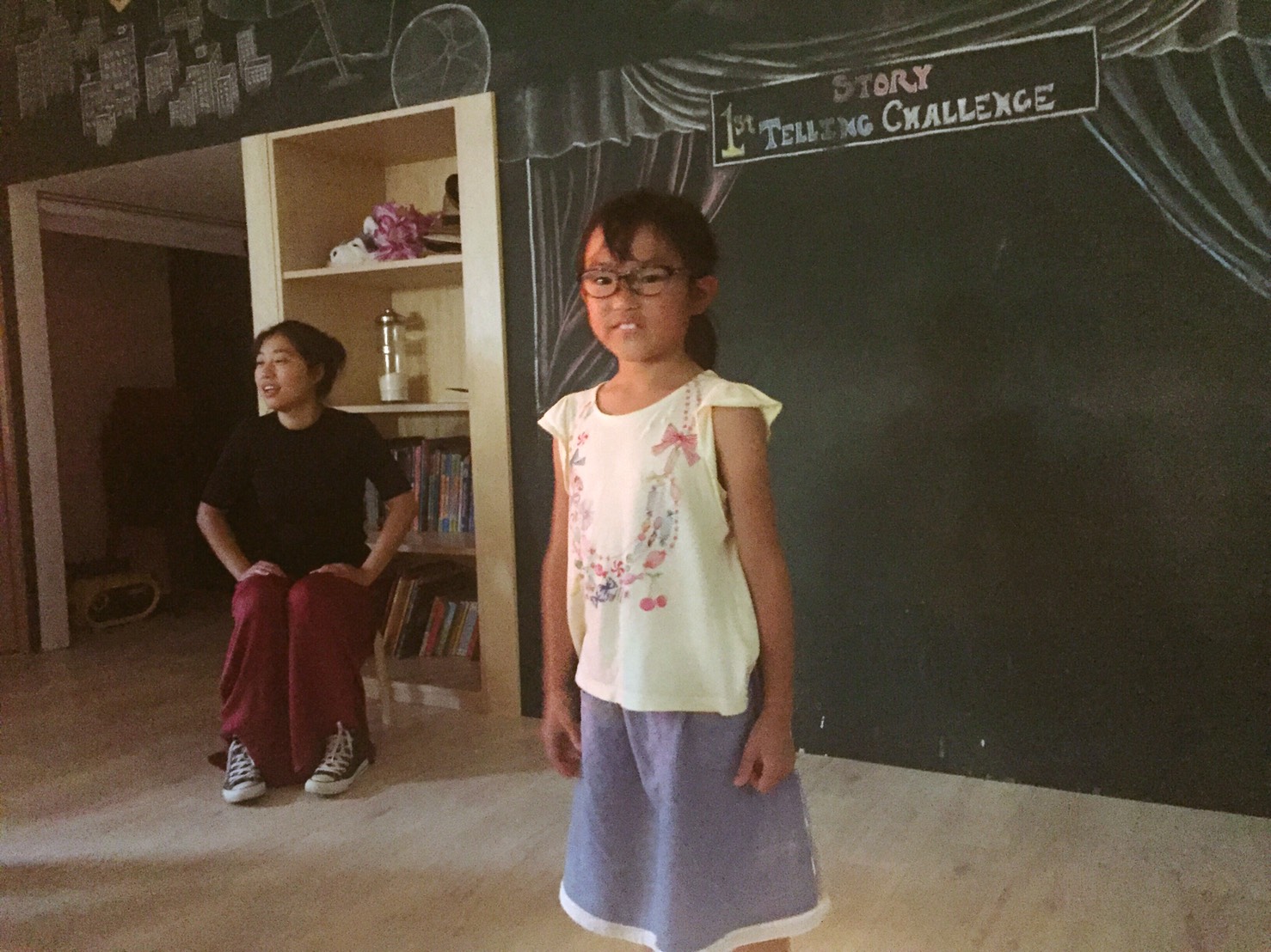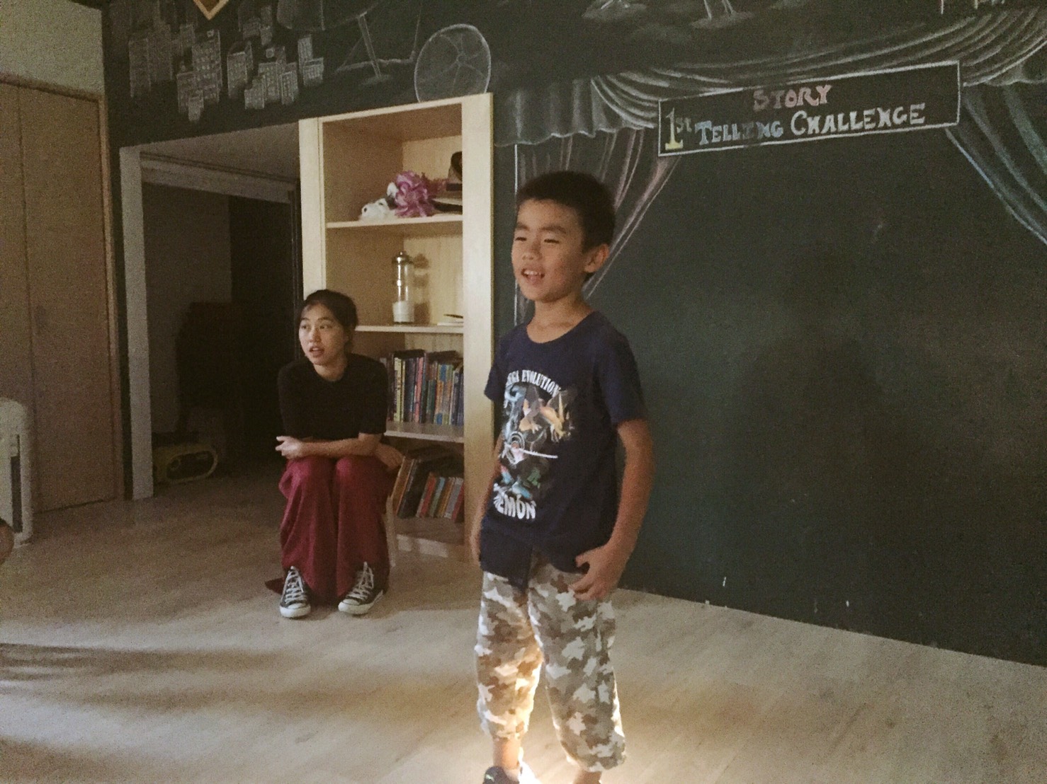 続いては、ドラマタイム!!電気やライトなども調整して、雰囲気づくりもばっちり。一文づつてもかまわないので、できるところまででよいから発表してみてください!