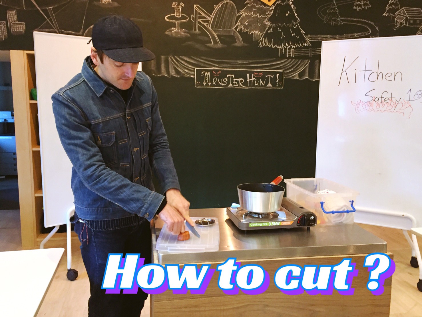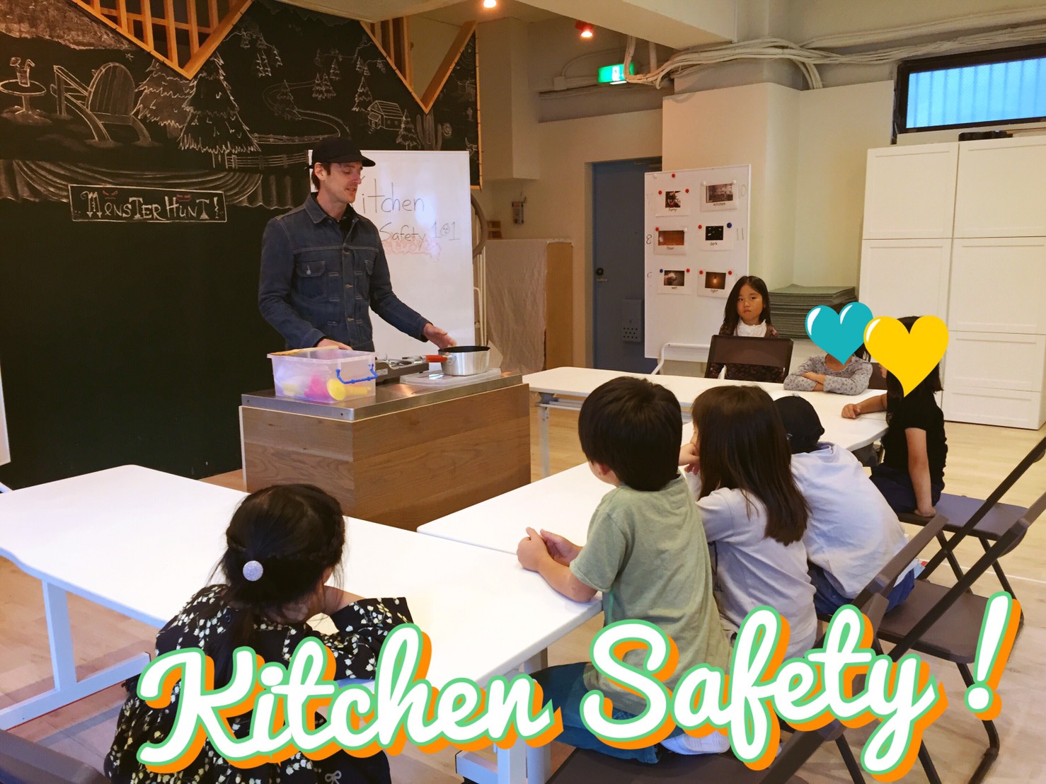 今日の”Workshop time”(ワークショップの時間)は“Cooking”(クッキング)で”Kitchen safety”(キッチンの安全について)をやりました。
