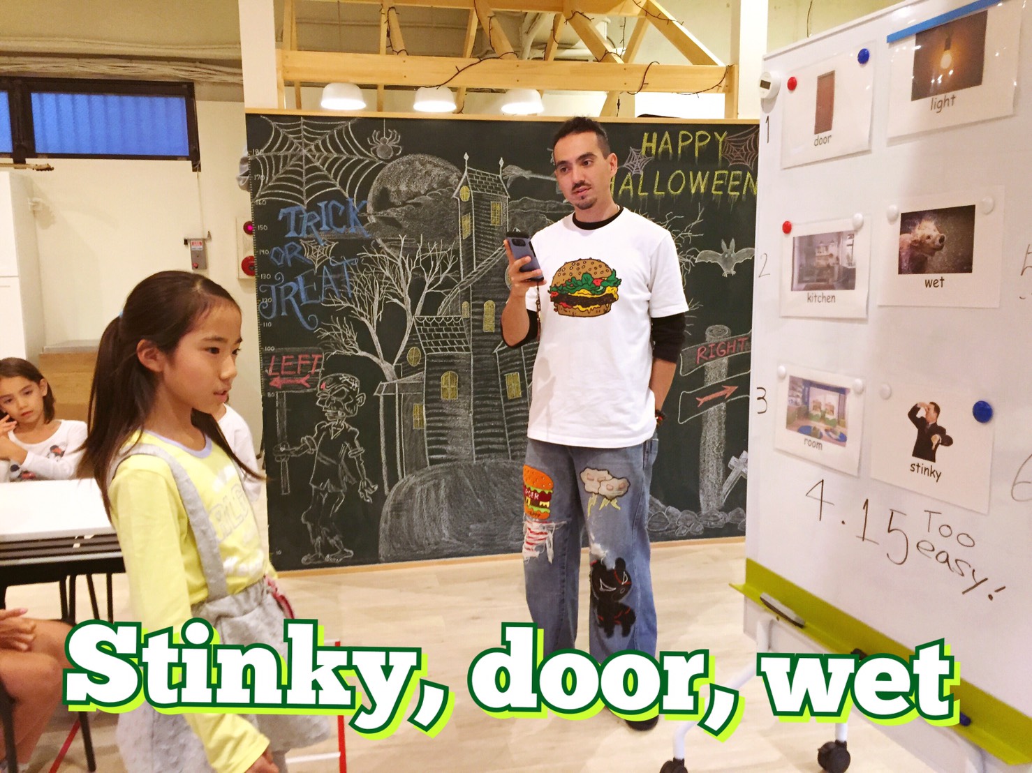 先ほどのスピードチャレンジで新記録を出した生徒さんがいたので、ご褒美でみんながやりたい!といったドッジボールで息抜きをした後、続いてはハロウィンに関連した単語を使ってのゲーム