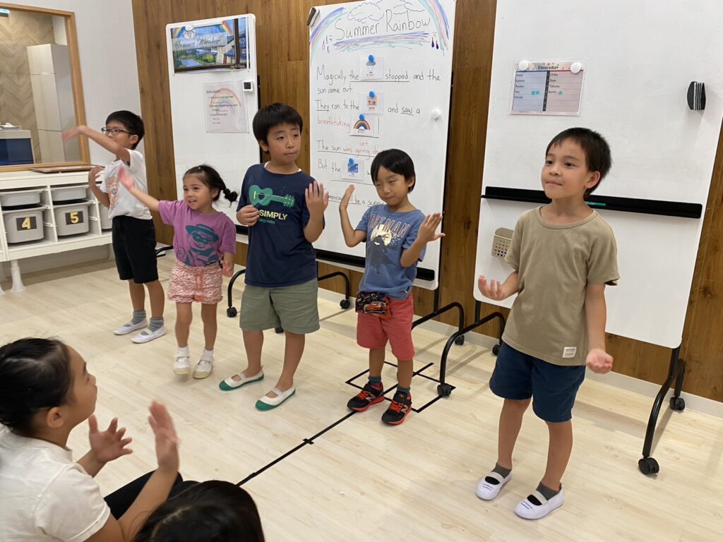 いつもは教室のほうで行っていますが、最近みんなが Seven Star Rulesを守れるようになってきたので、広い場所でダイナミックに行いました!