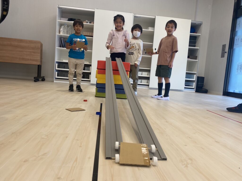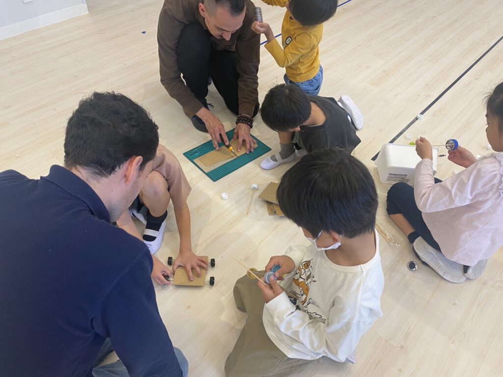 今日は、ワークショップ「Make a car!!」(車を作って走らせよう!)