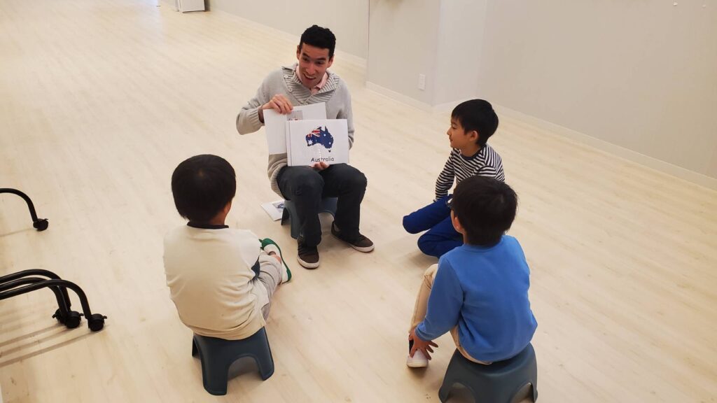 そのあとは、体験生も交えながら、ストーリーの単語の練習。