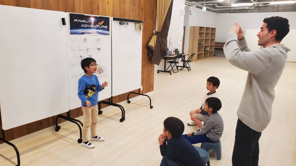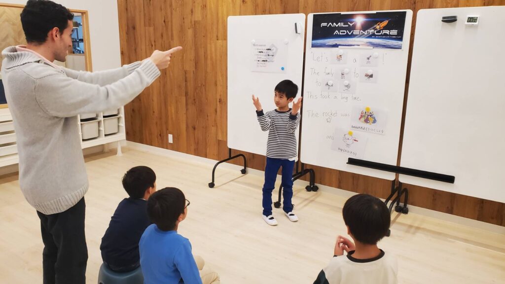 前で発表したり、少しなれてきた 生徒さんはセンテンス(文章)での発表。