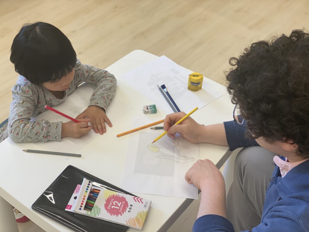 今日は、ジョナサン先生とまずはお絵描きから始めました。