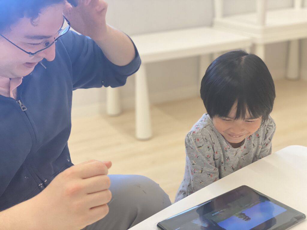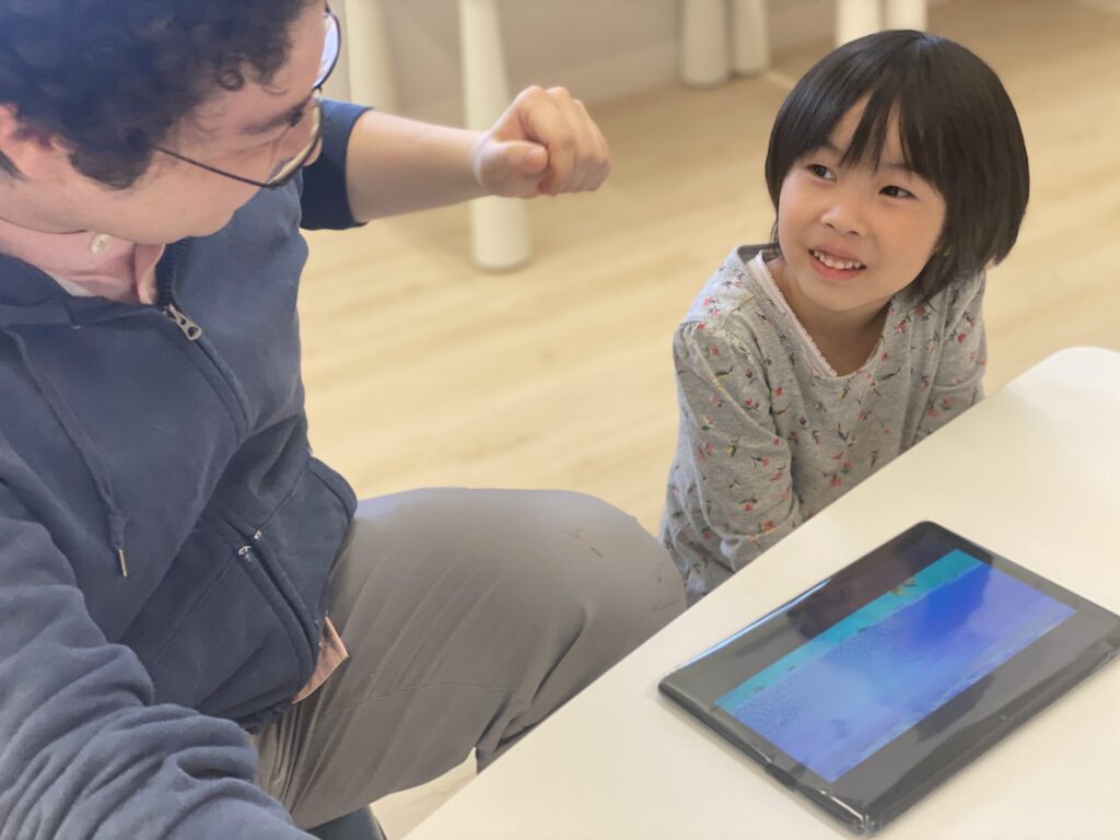 また今日はタブレットをつかって発音やリーディングの練習をしました。