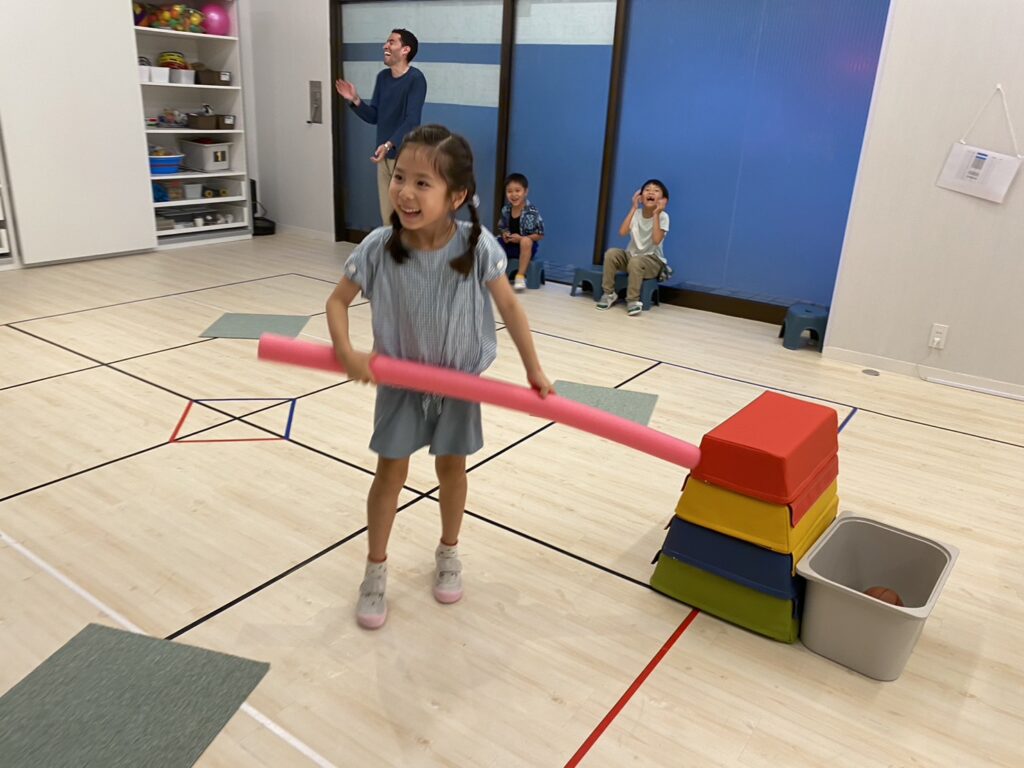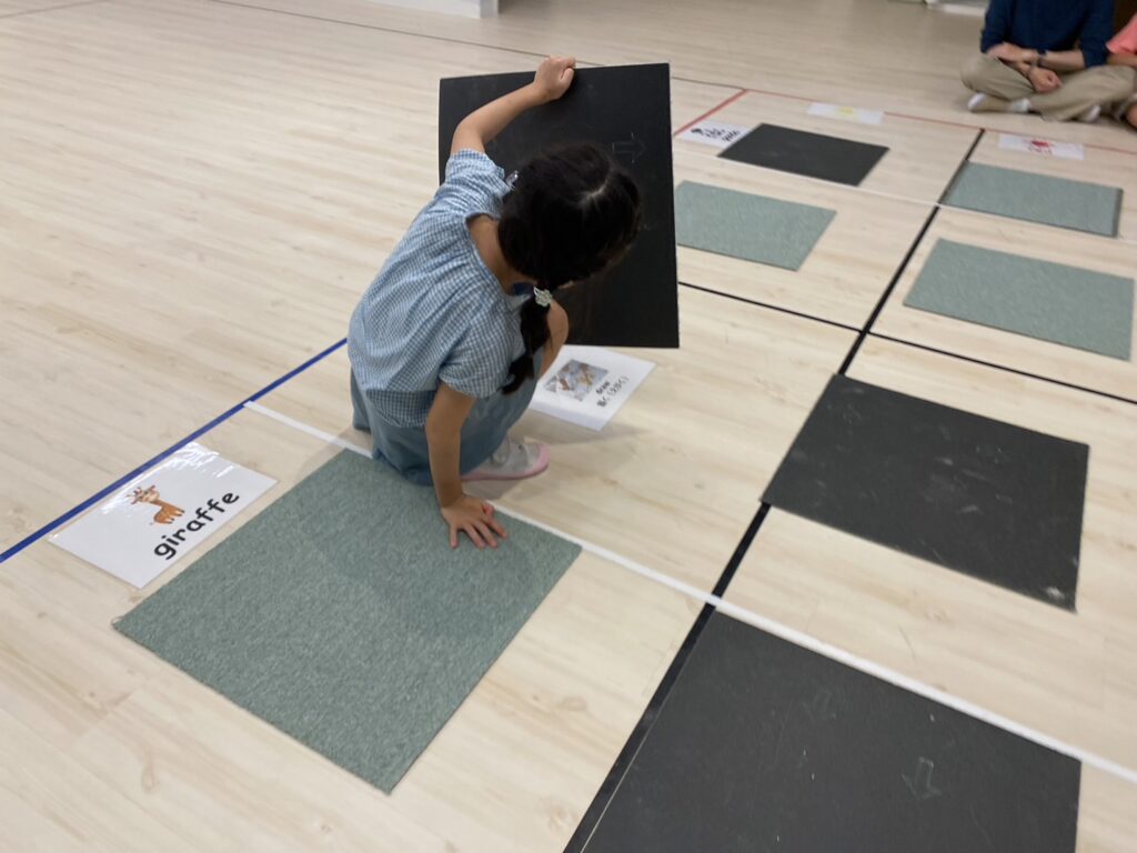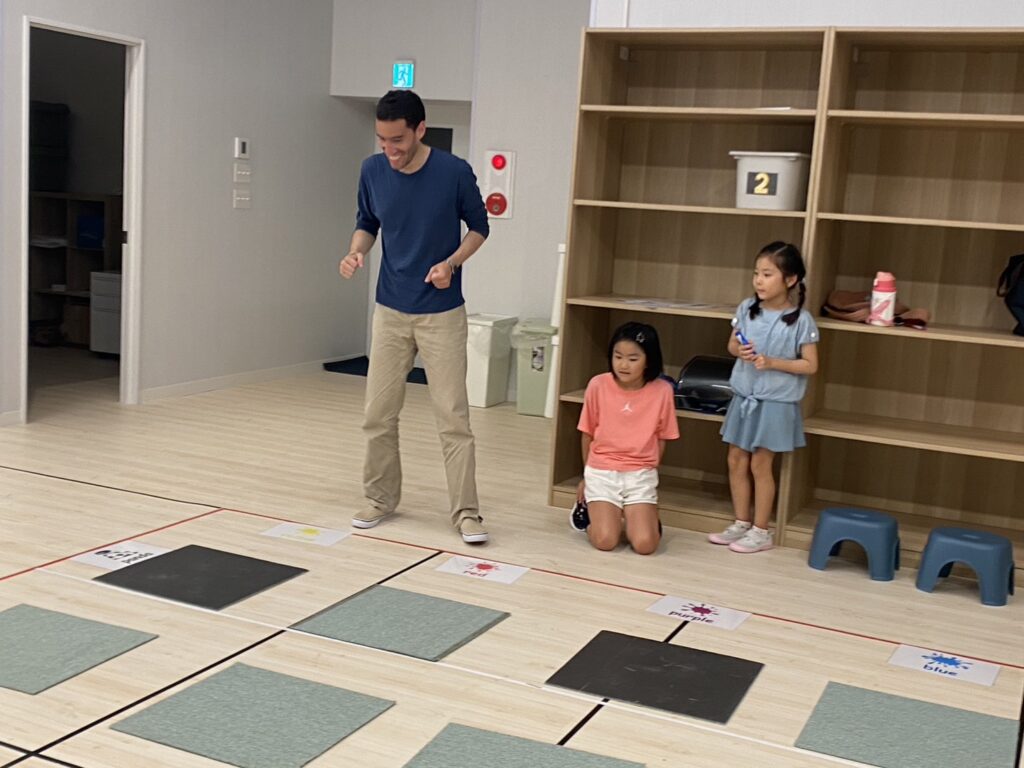先生:If you step out from the mat, you are out! もしマットから足が出ちゃったら、アウトだよ!