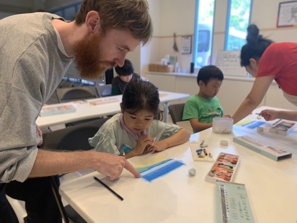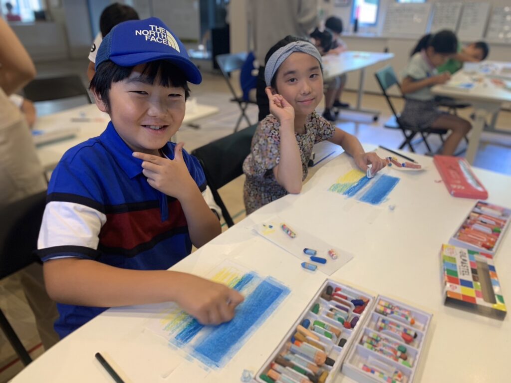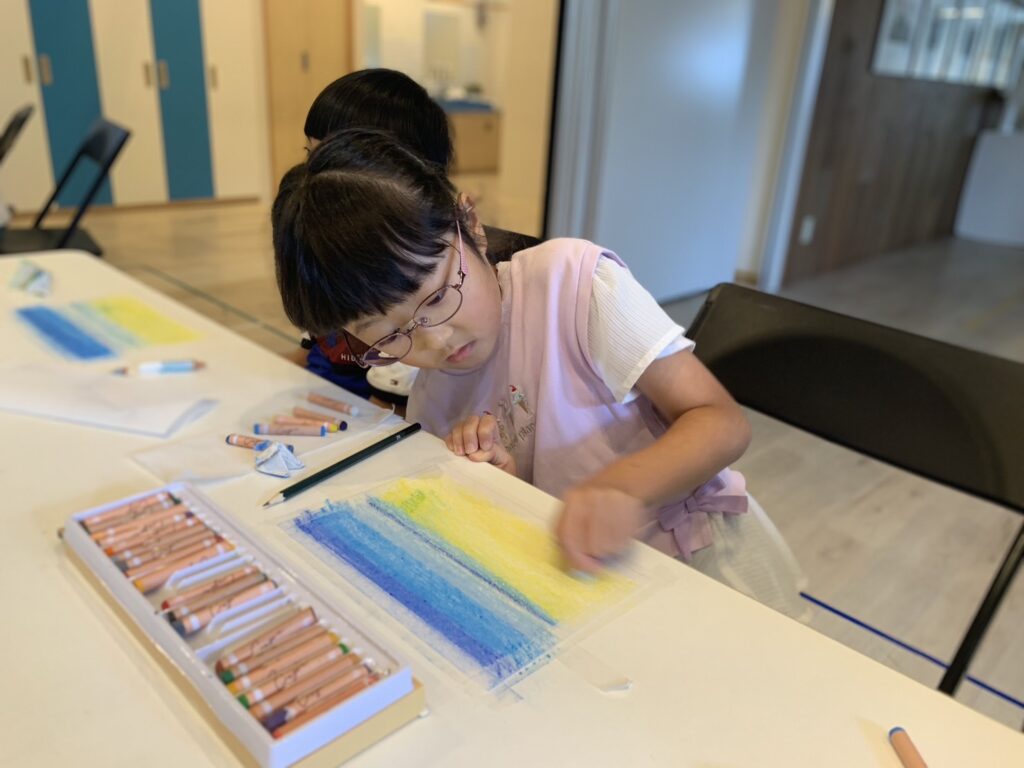 オイルクレヨンを使って絵を描きはじめると