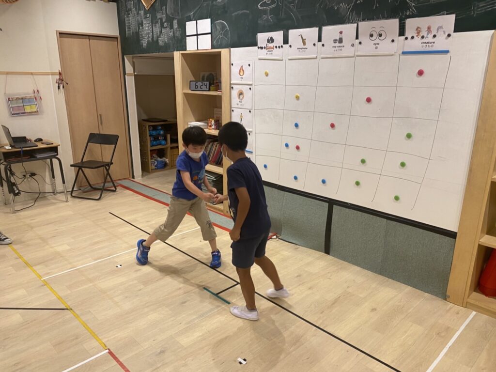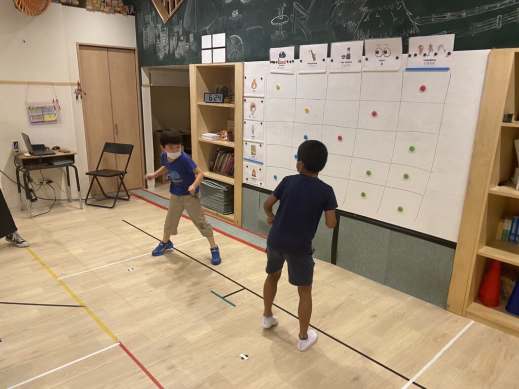 レギュラークラスでは、チームに分かれて陣取り合戦のゲームを行いました!