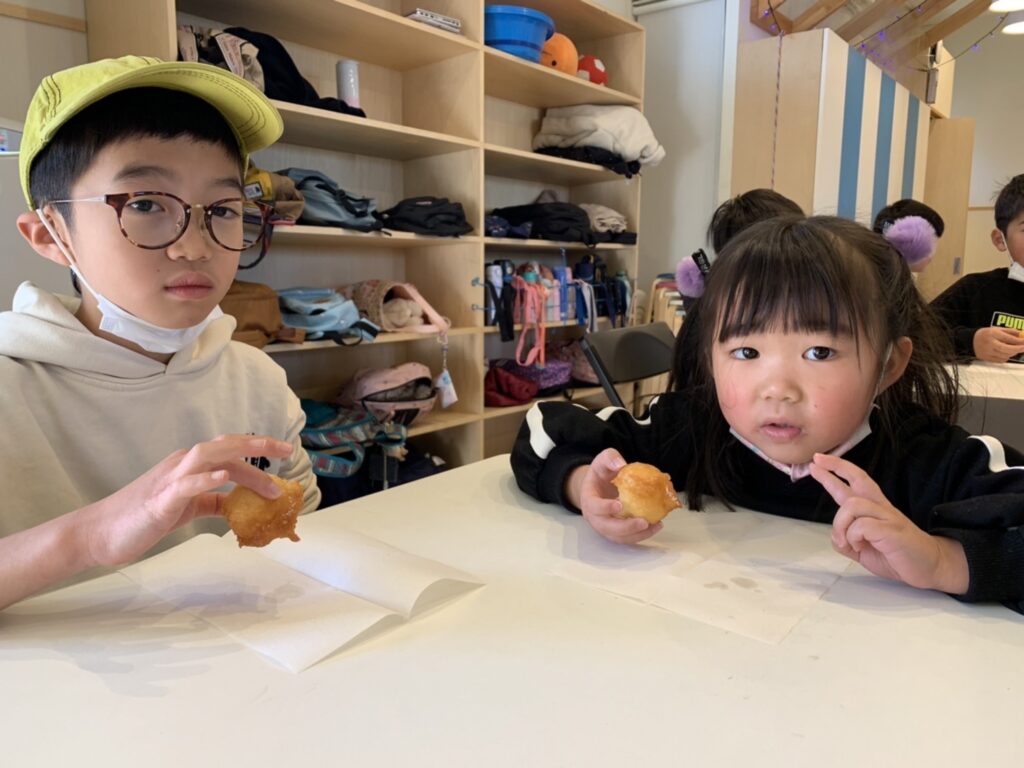 先生 It’s lunch time soon so we can’t give you many doughnuts.