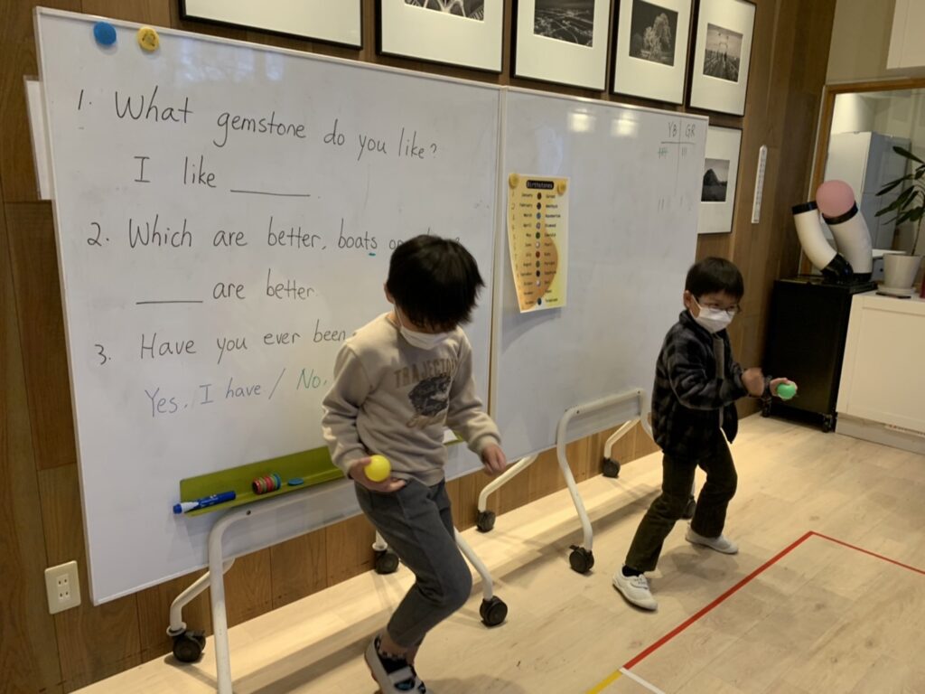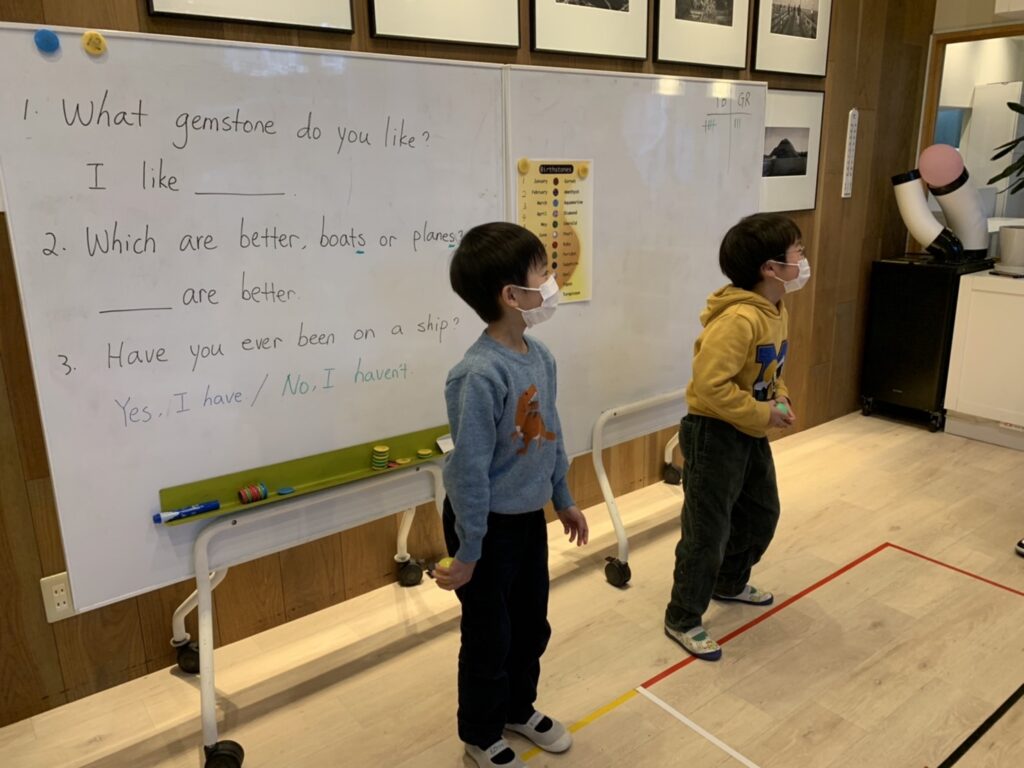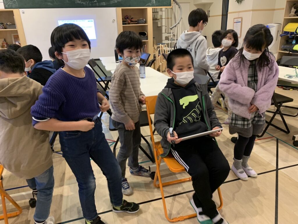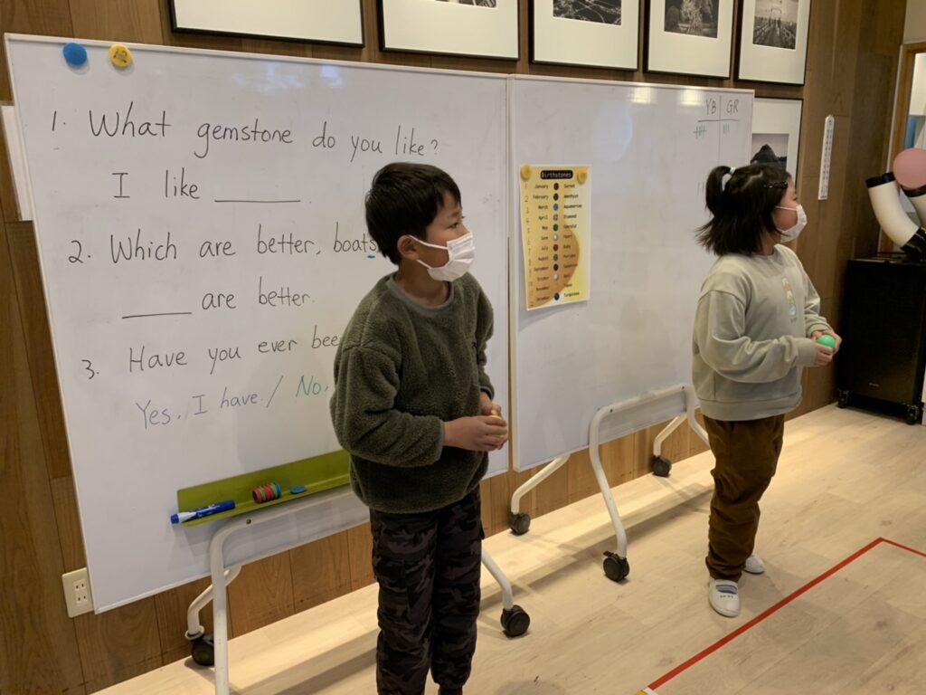 メインエリアではチームごとに発音やジェスチャーの練習をしていました