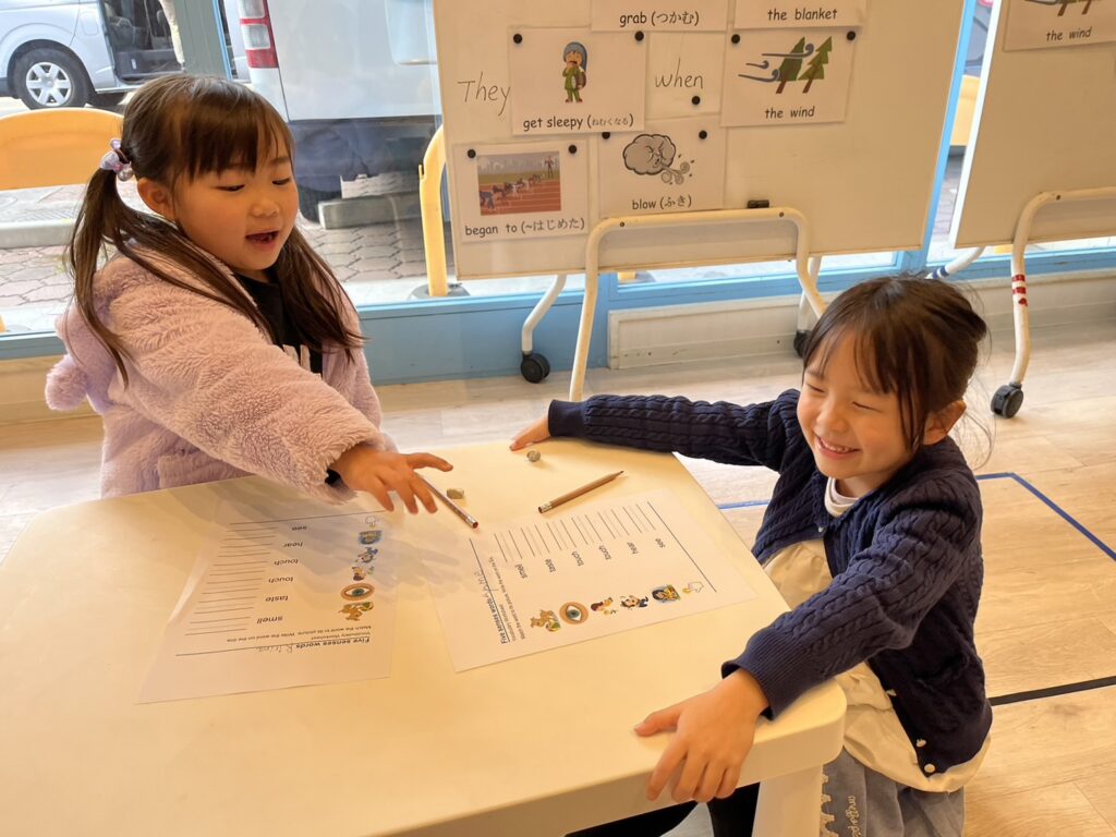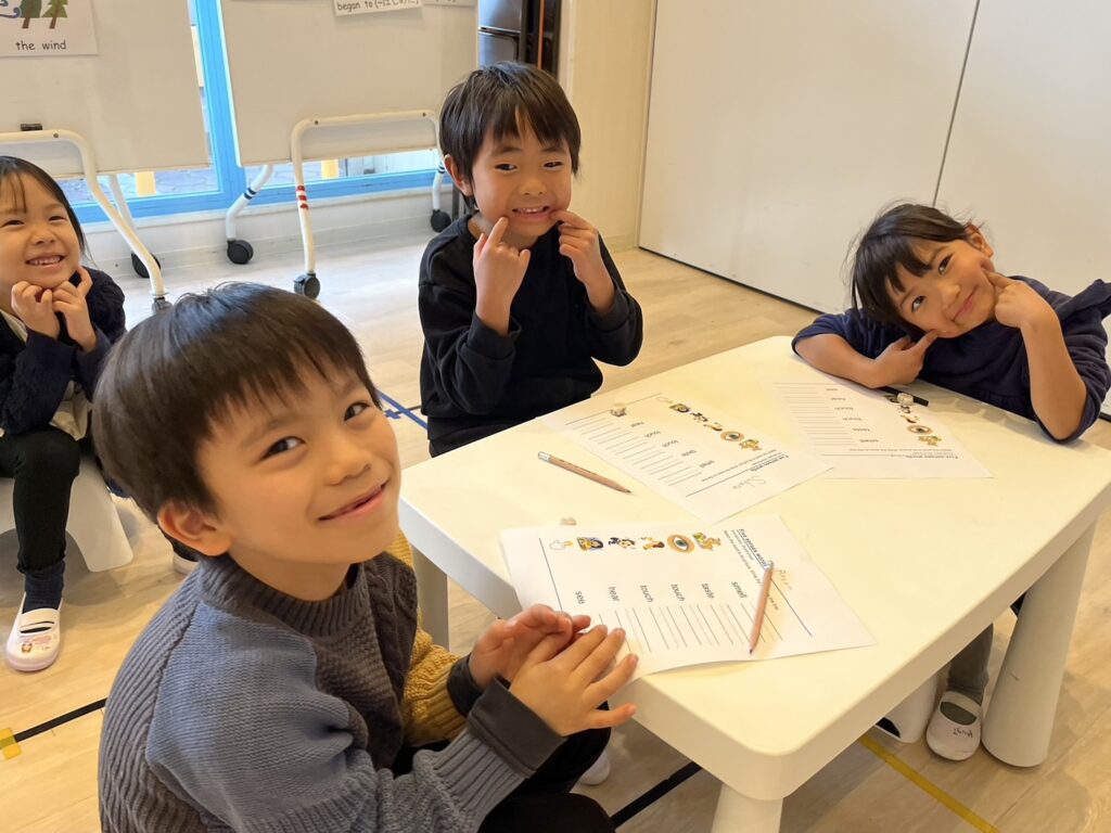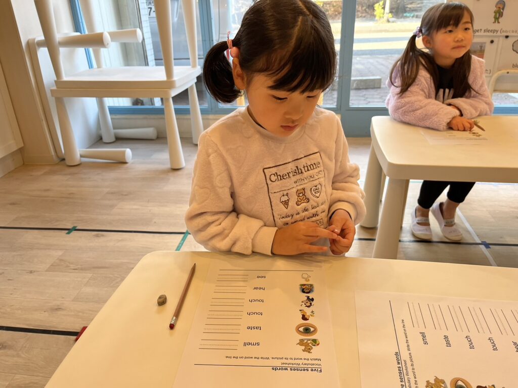 プレクラスで五感に関する単語を学んでいます!