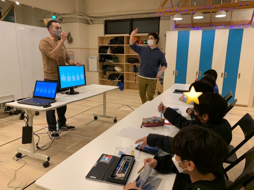 初級プログラミングクラスと中級スピーキングクラスの様子