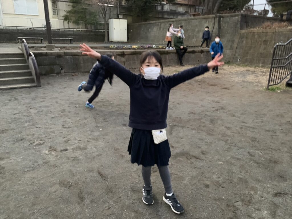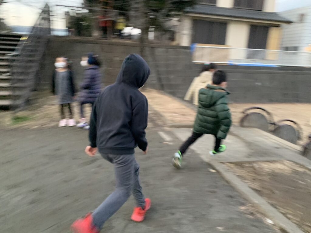 みんなで避難所まで行きそのあと公園で少し遊びました