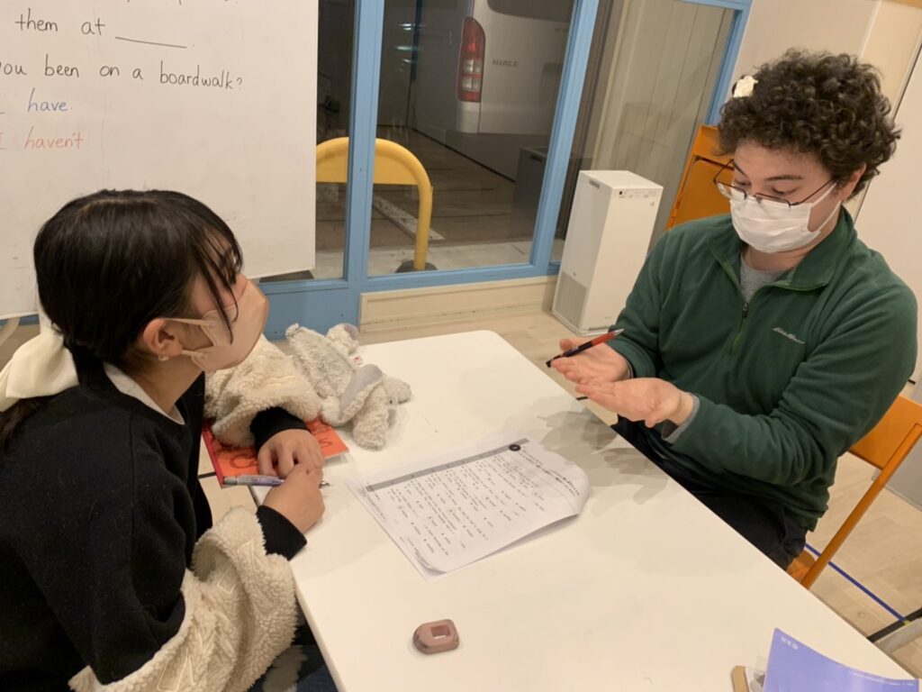 英検クラスは今日は2人だけだったので先生と1対1でやりました