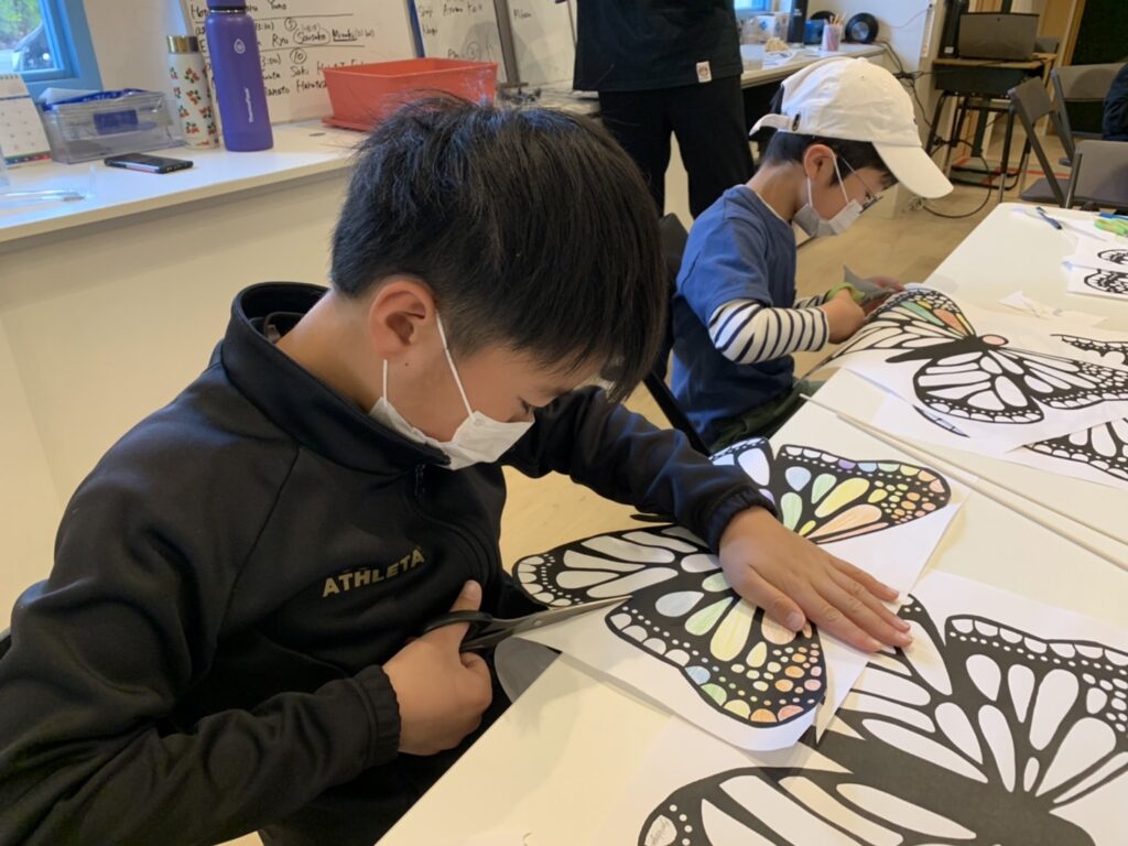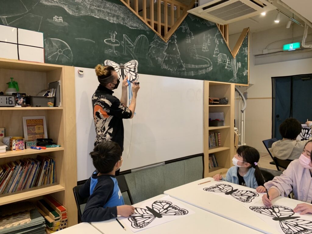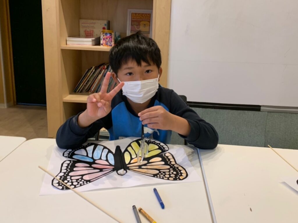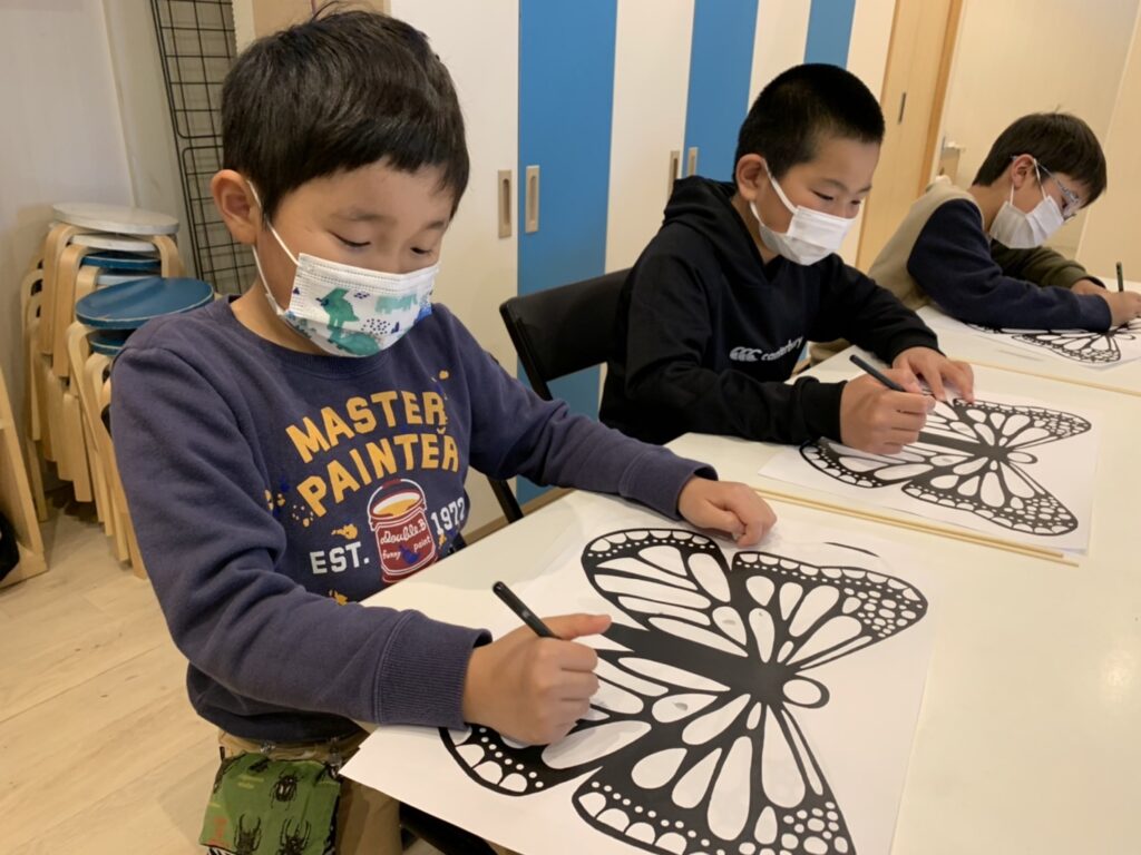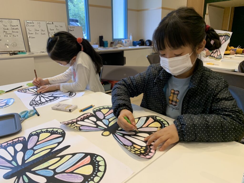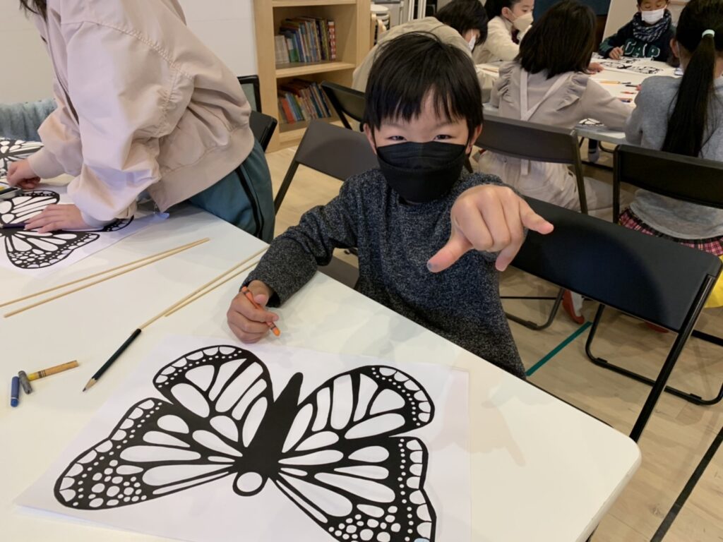 蝶々の色を塗る時間はみんなが好きな音楽をかけて