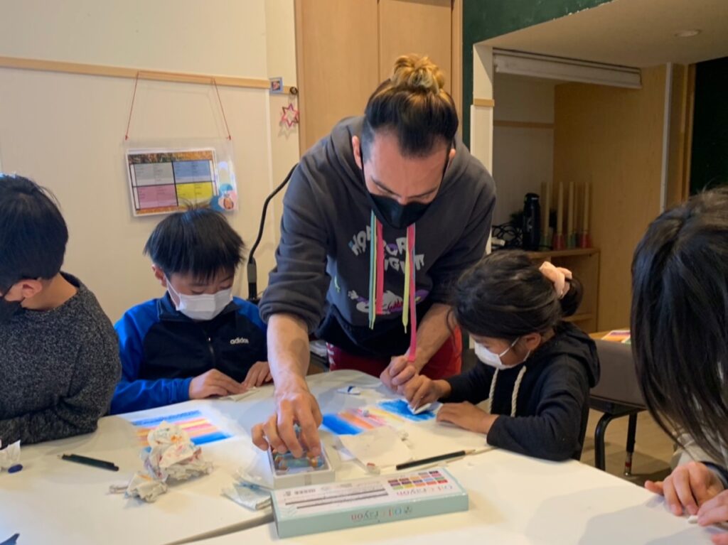 はじめてオイルクレヨンを使う人もいて最初は難しそうにしていましたが