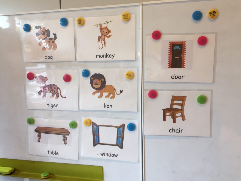 プレエリアでは”Animal”(動物)と”School-objects”(学校にあるもの)を学び、7スタールールにある”Loud and clear”(大きな声ではっきりと話す)を意識して何度も練習しました
