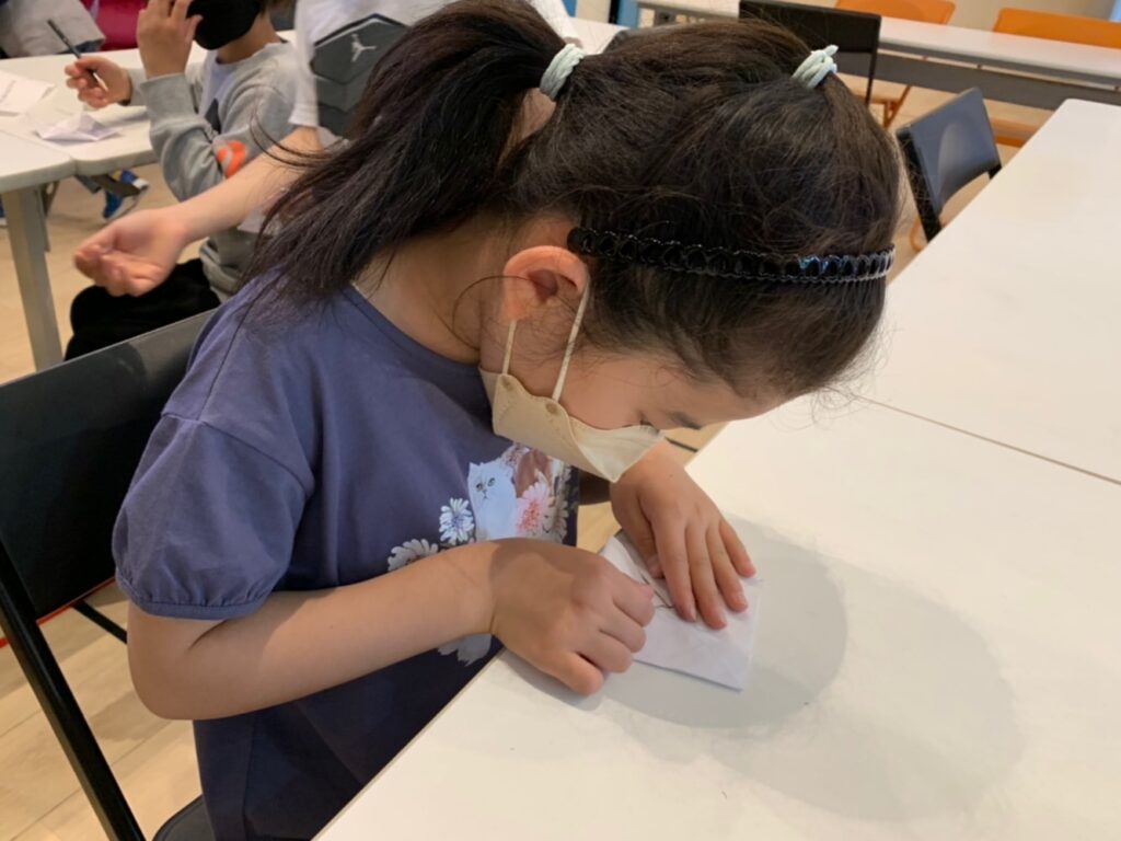 折り紙でパクパク占いと言われる紙占いを作り
