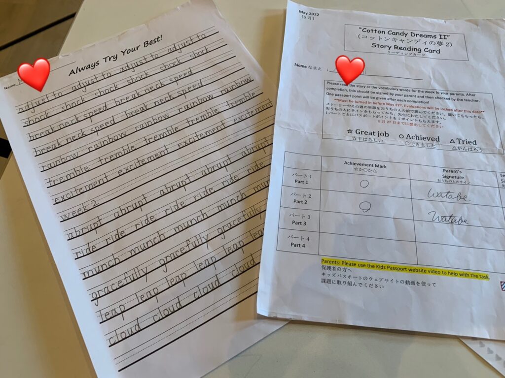 リーディングとライティングの宿題を持ってきてくれた生徒がたくさん!