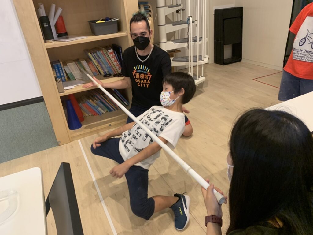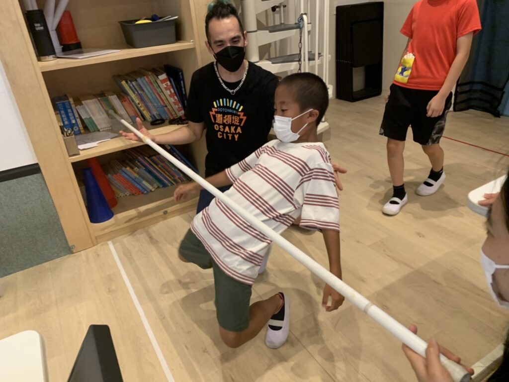 今日はDJつき、音楽に合わせて1人ずつ棒をくぐり抜けていました