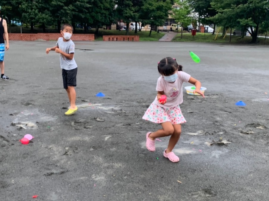 チーム対抗の水風船バトルをしました