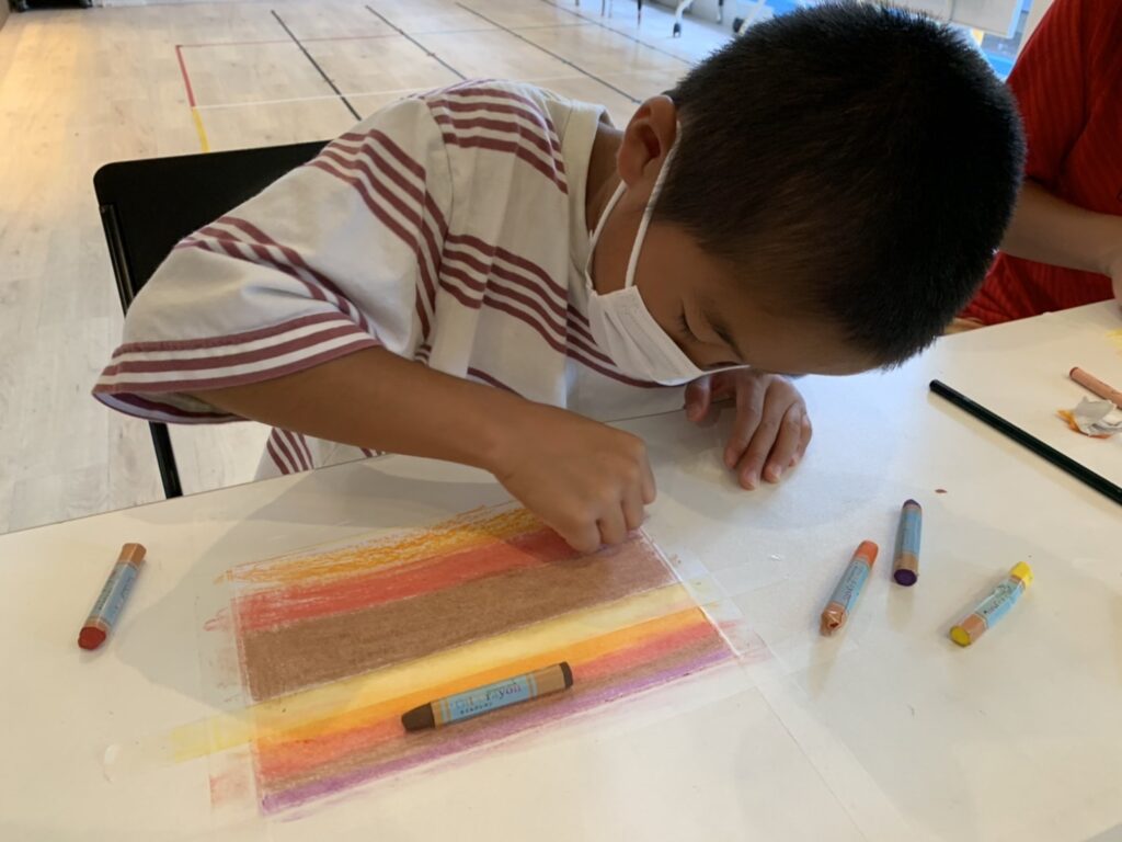 Take purple, brown, red, orange and yellow out of the crayon boxes.