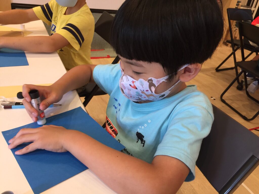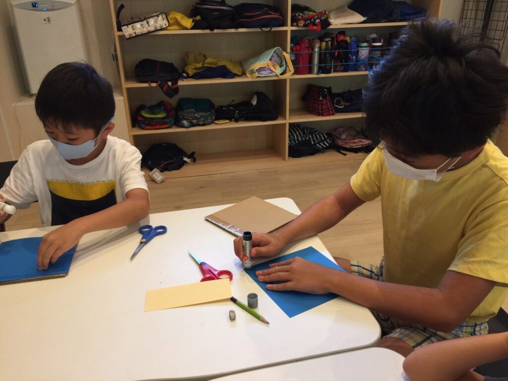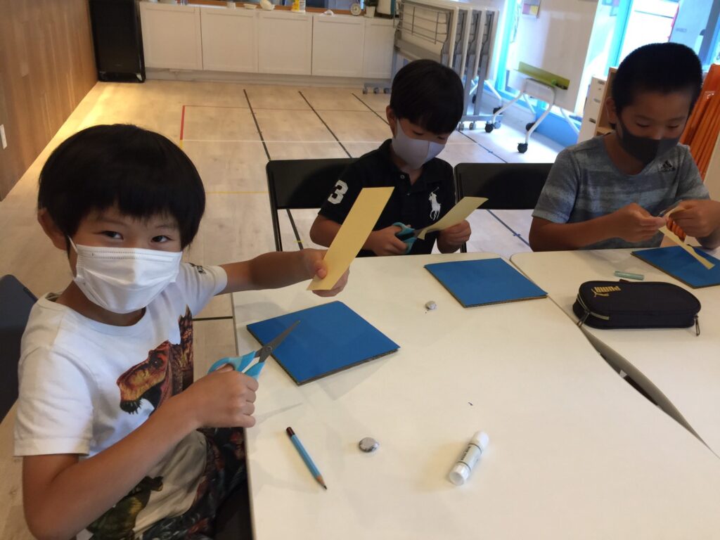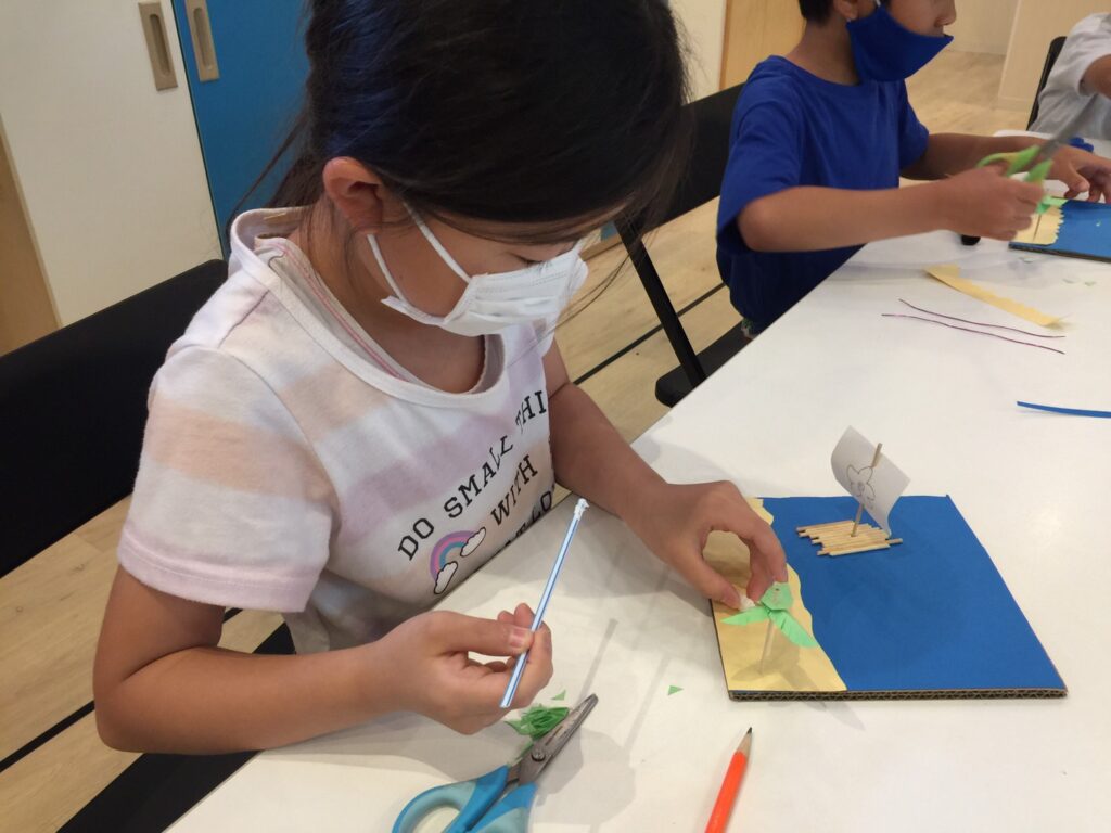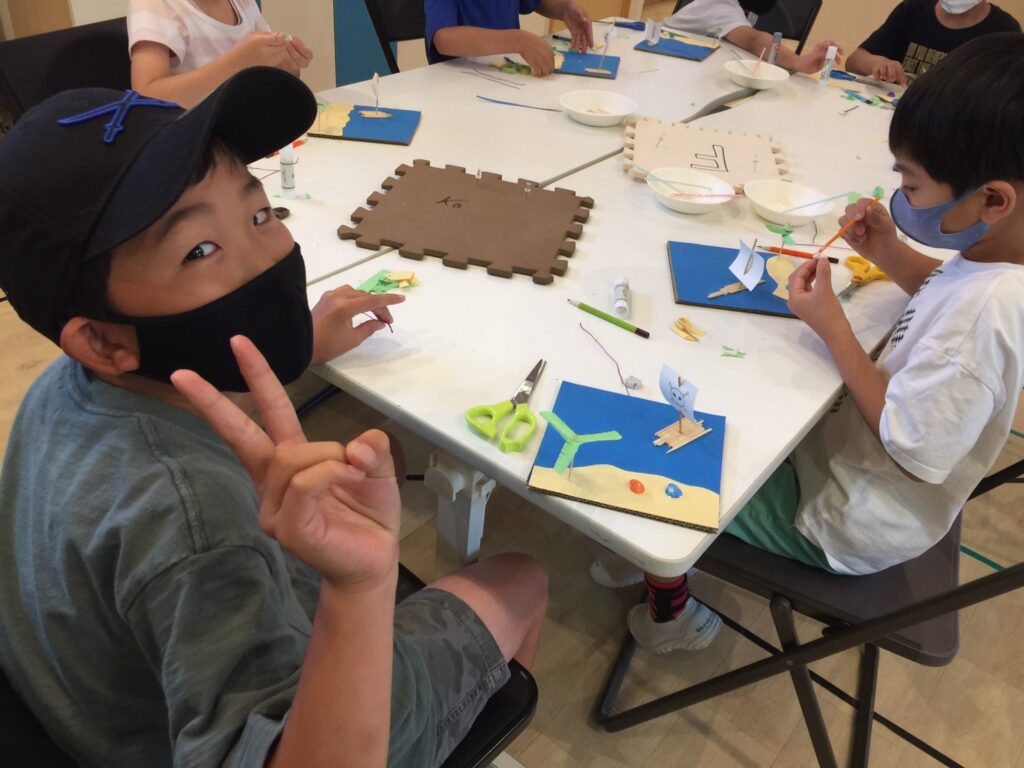 段ボールに画用紙を貼り竹串を使っていかだを作ったり
