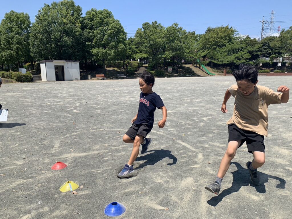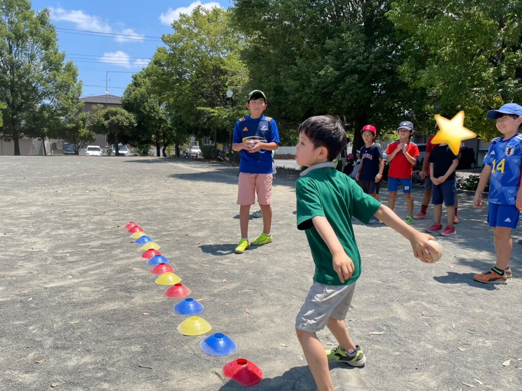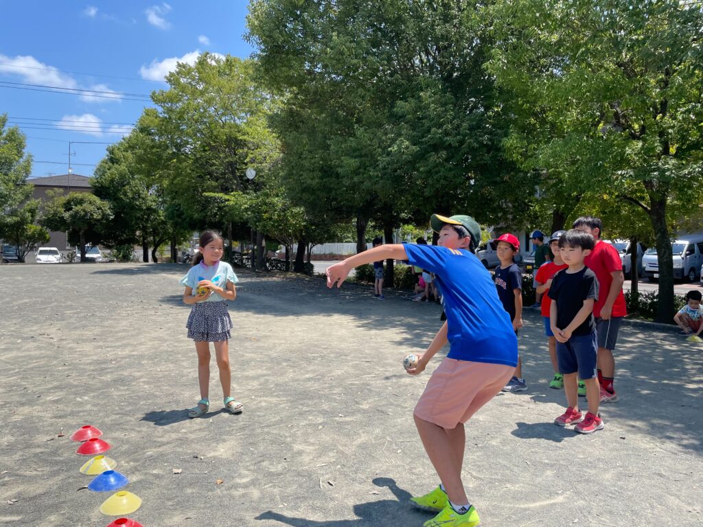 晴天の下、汗を流しながら全力でチャレンジ!