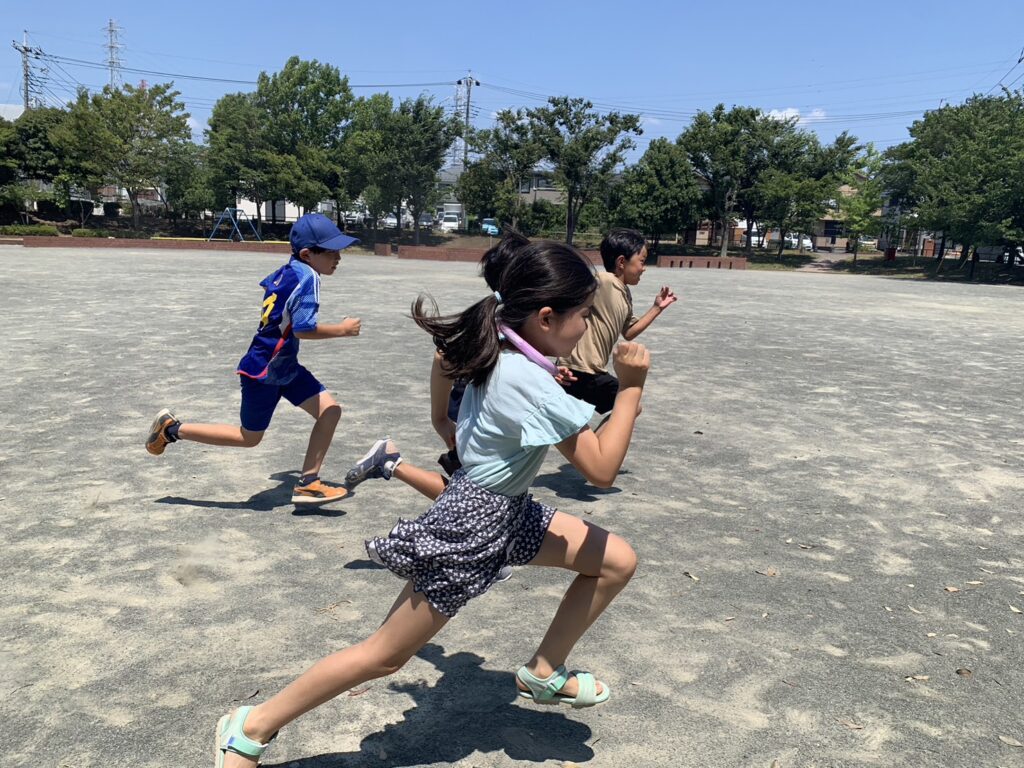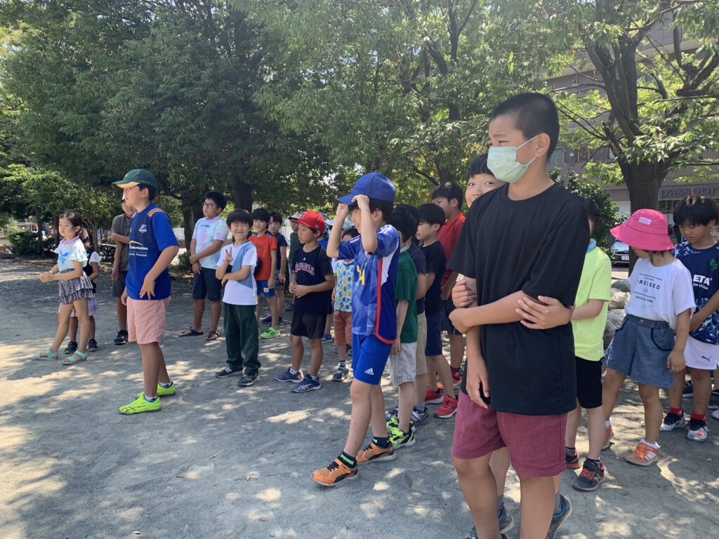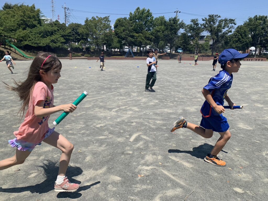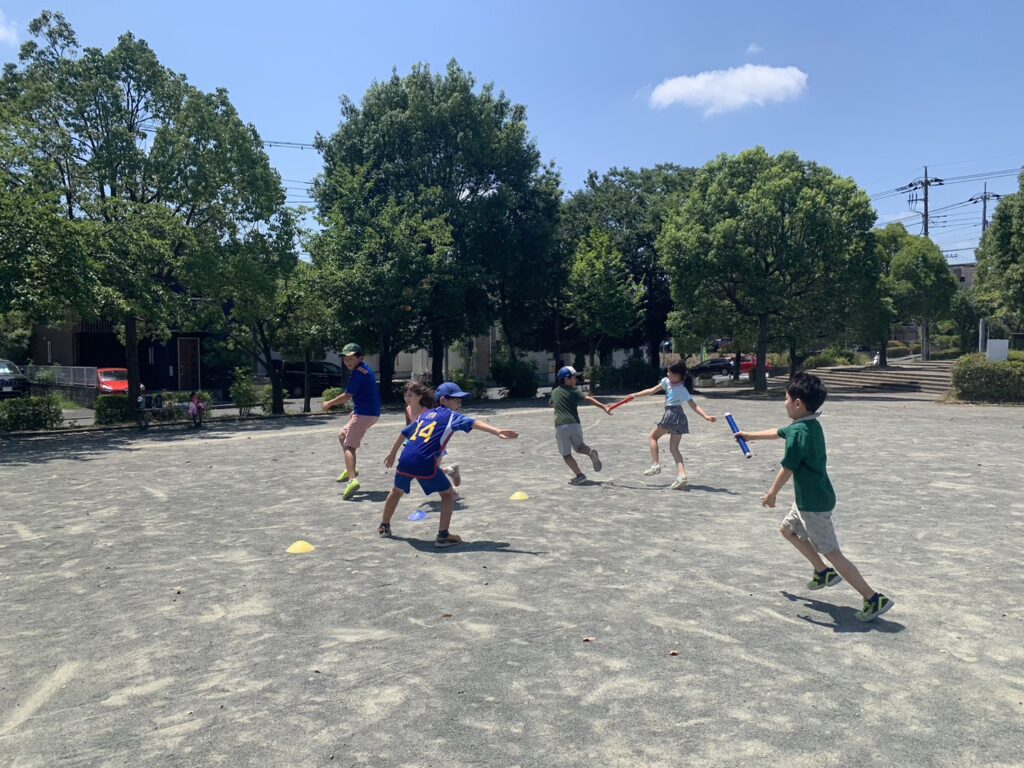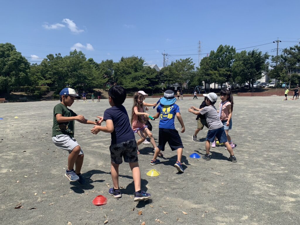 4チームに分かれ公園で3つの種目にチャレンジしました