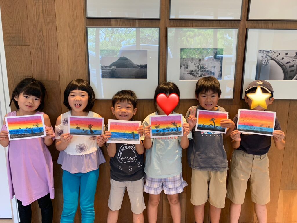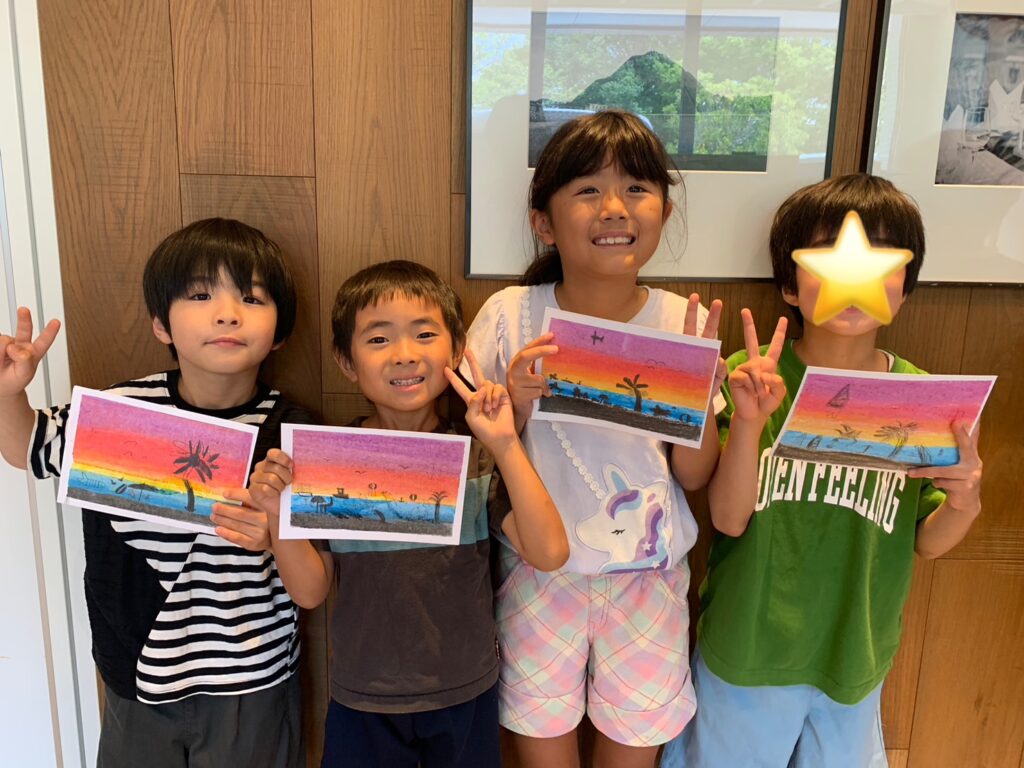 【青葉校】夕焼けがきれいなビーチを描きました