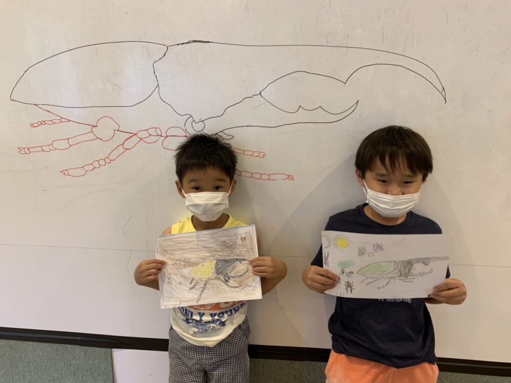 それぞれ個性的なカブトムシの絵を完成させていました!