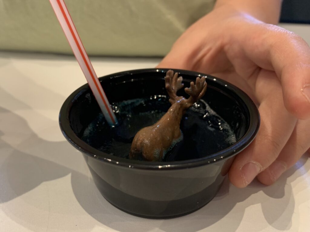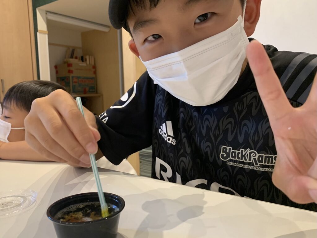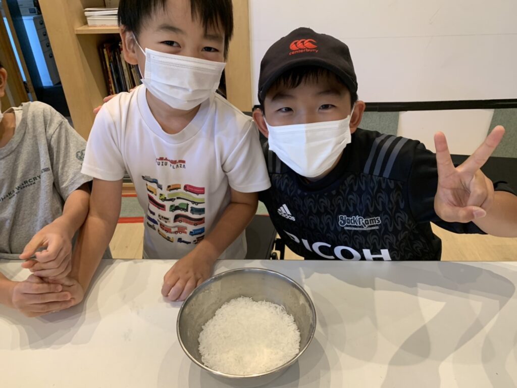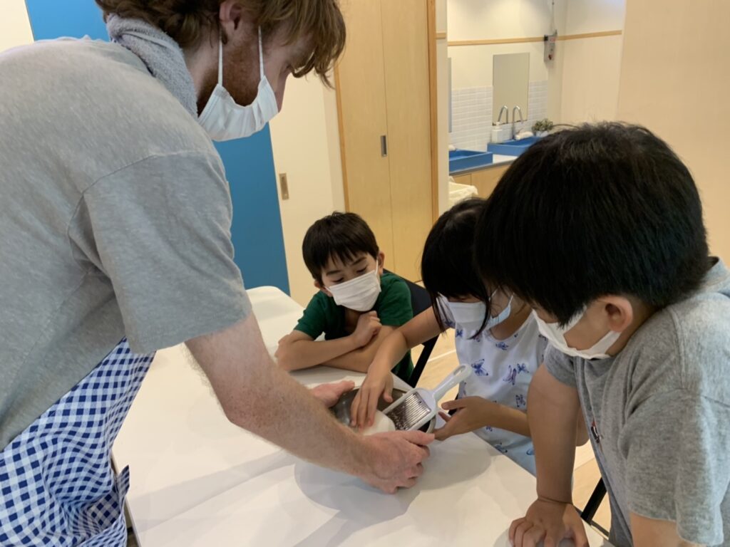 次は石けんを液体に溶かしてからみんなのカップにいれたあと