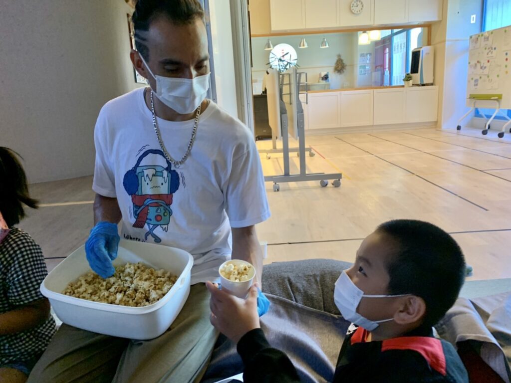 (今日のポップコーンの種類は塩、のりしお、バナナメープルとチーズでした)