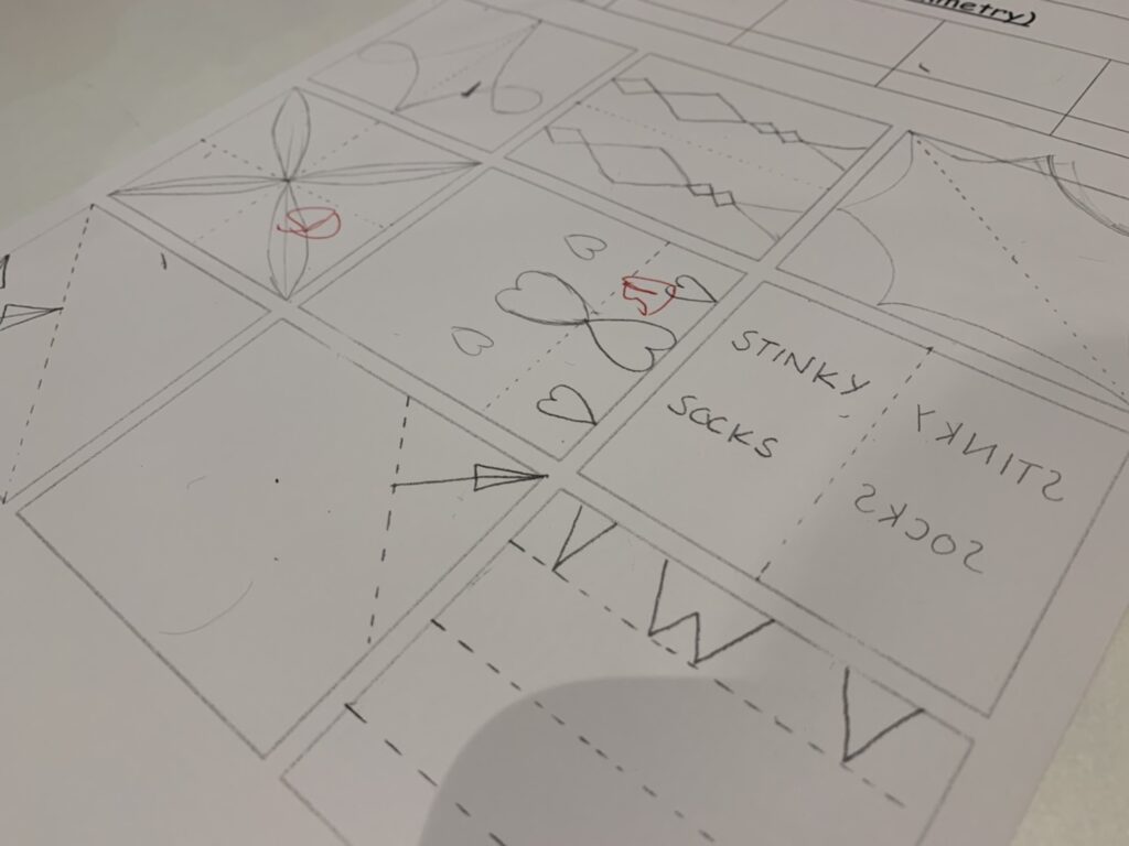 そのあとには実際にワークシートに描かれた絵を左右対称になるように