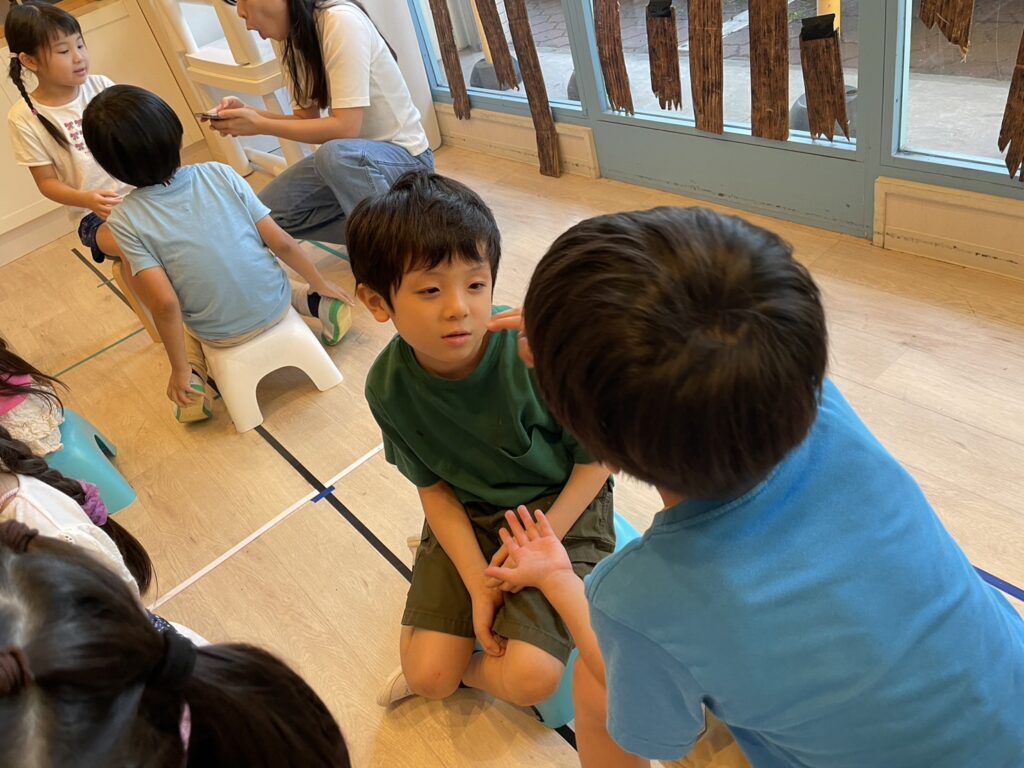 Preクラスでは、人数が少ないので、ペアでの練習。