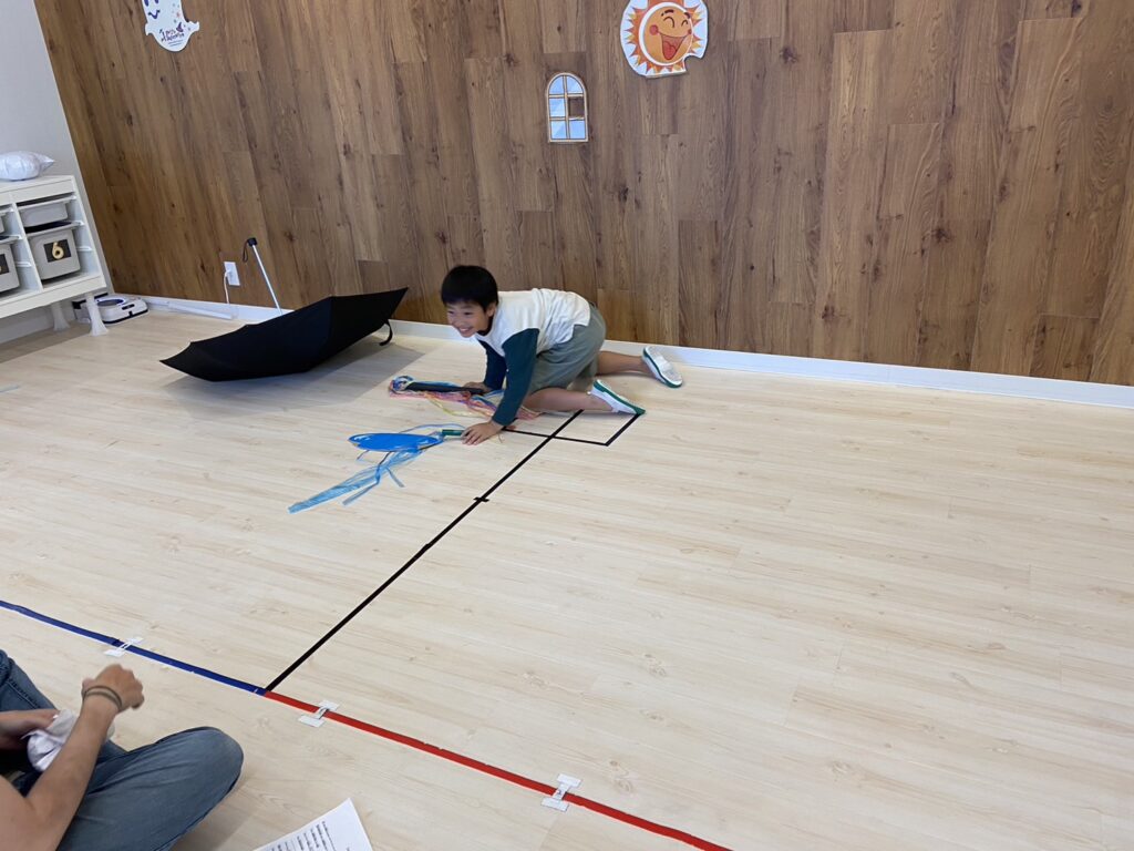 今回も先生とグループごとに練習です。最終日ということもあり、ストーリーが頭に入っている子も多く、パフォーマンスや表情などをよくするよう練習します。