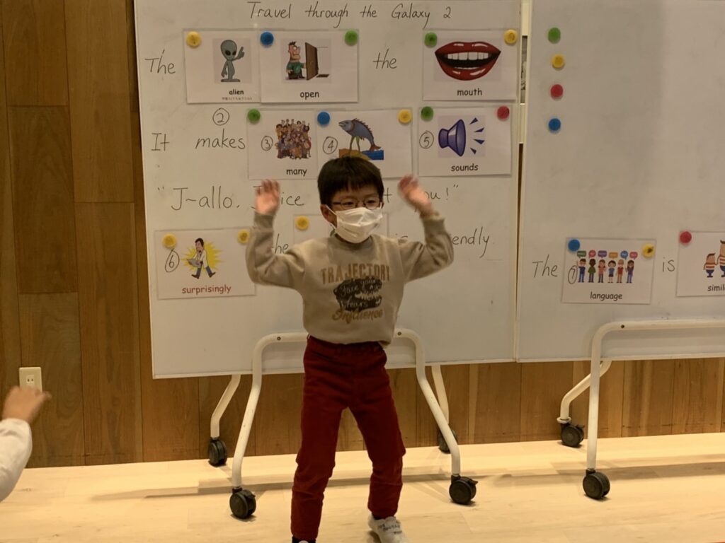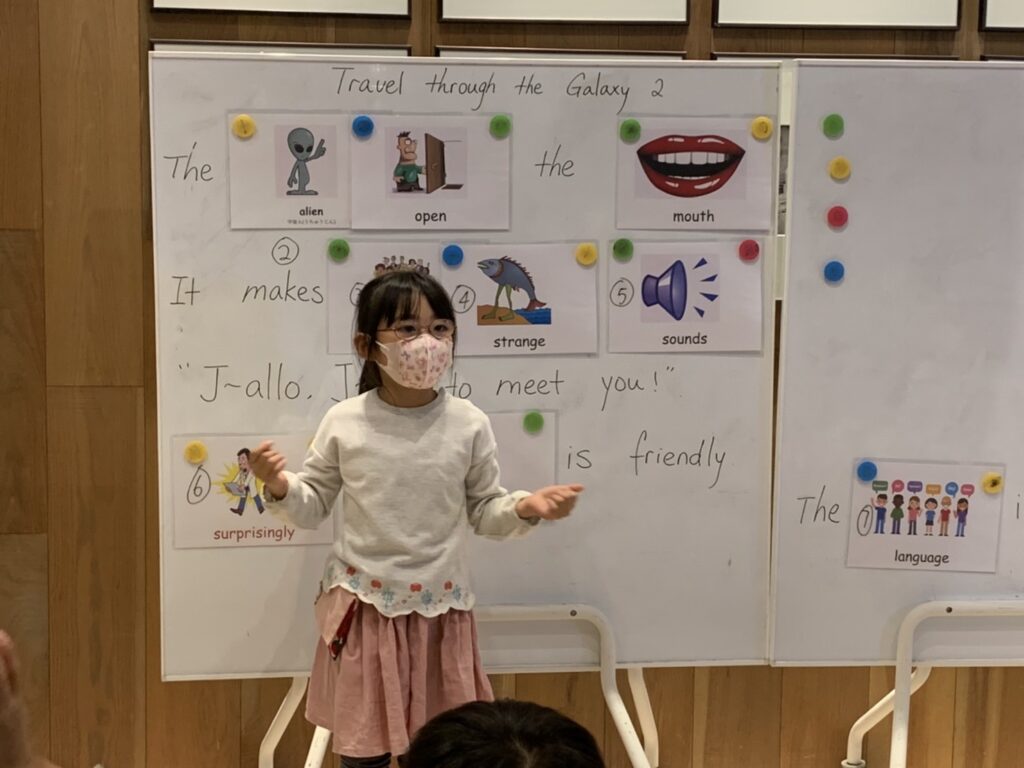 今日の発表では宇宙人語の部分で声を変えている生徒がたくさんいました