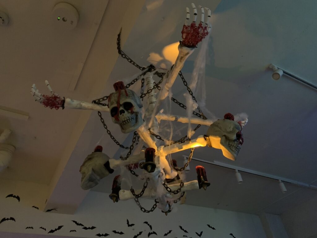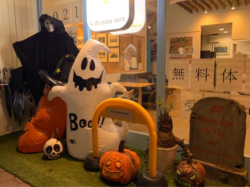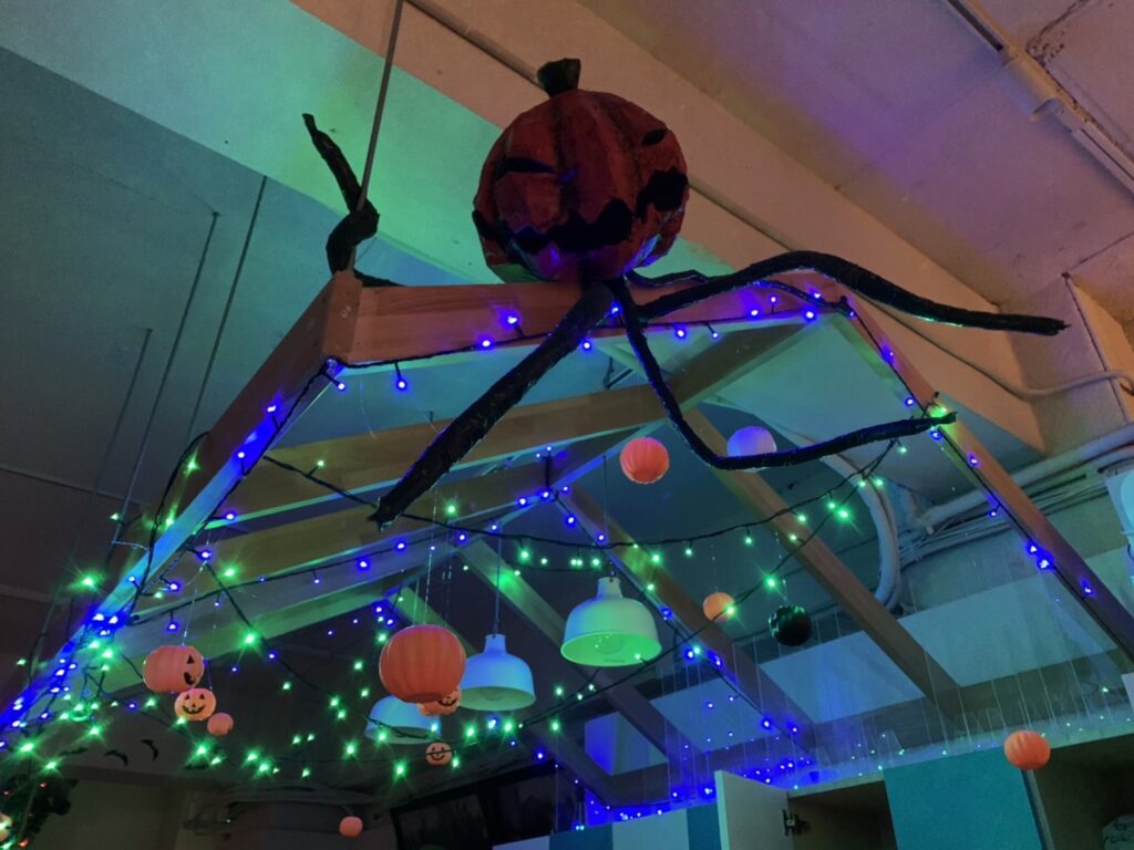 ハロウィンのデコレーション、ほとんど先生の手作りです