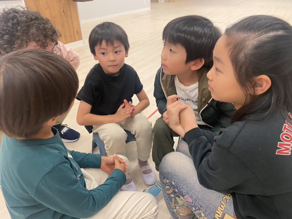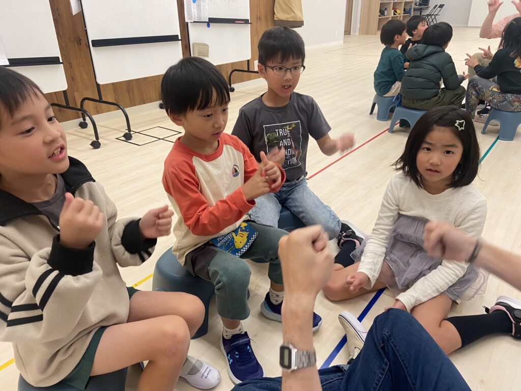 ストーリータイムでは、まず先生がお話を読みながらジェスチャーを見せます。
