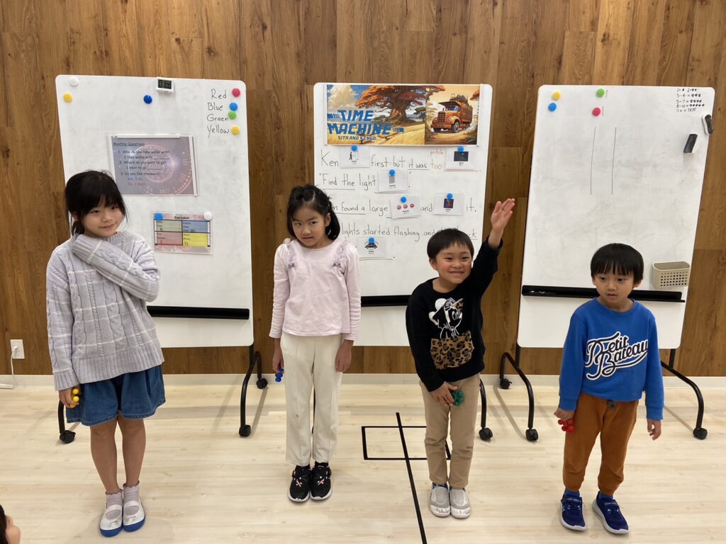 先生の質問に皆がトライしていました!