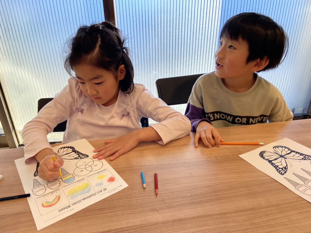 アイスクリーム、バタフライを使い、色を混ぜることを学びました。