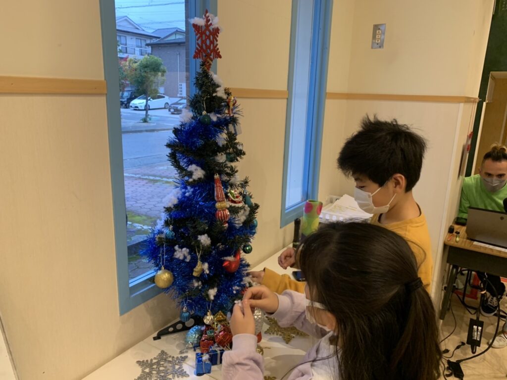 クリスマスの音楽をかけながら楽しくデコレーションをしました!