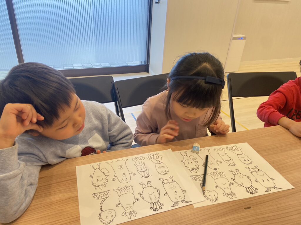 その後はモンスターを使い感情を描いたり、グループで相談しゲームに挑戦!
